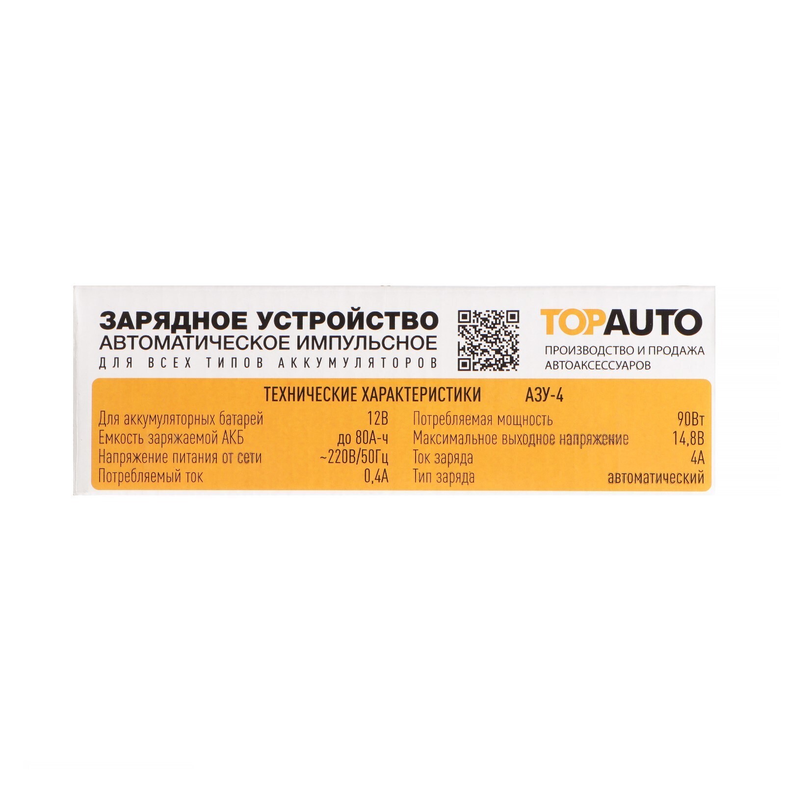 Полностью автоматическое зарядное устройство для автомобильного аккумулятора АЗУ-4 ТОПАВТО предназначено для бережной и эффективной зарядки свинцово-кислотных АКБ всех типов, в т.ч. так называемых «мокрых», необслуживаемых, клапанных (для источников бесперебойного питания), абсорбирующих стекловолоконных и большинства гелевых АКБ. Ключевое достоинство автоматического автомобильного зарядного устройства для аккумуляторов автоматического типа АЗУ-4 - это его способность быстро и эффективно зарядить АКБ без риска ее повреждения - например, закипания электролита, перенапряжения, избыточного заряда и т.п. Также устройство предотвращает повреждения аккумулятора благодаря технологии бережного автоматического управления процессом зарядки, за счёт оптимального сочетания напряжения и тока зарядки.