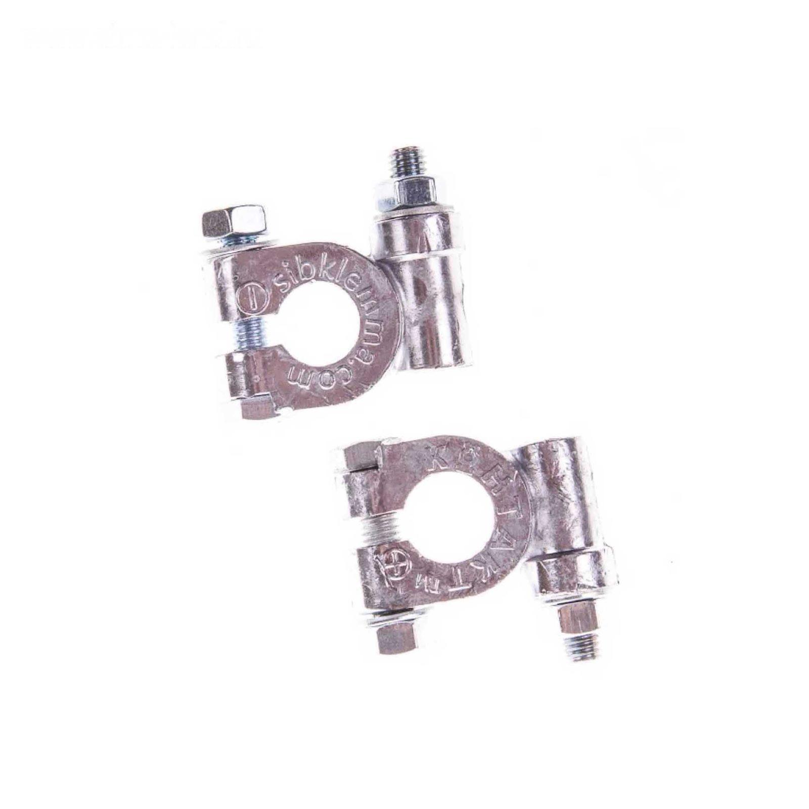 Набор клемм используется для аккумуляторных батарей авто. Крепление провода боковое, осуществляется при помощи болта. Клемма изготовлена из свинца и выполняет работу не только крепления проводов, но и в некотором роде «проводника» и предохранителя. Свинцовая клемма обладает достаточной электропроводимостью и пластичностью.