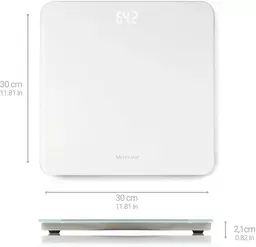 Электронные напольные весы, максимальный вес 180 кг, точность измерения 100 г, материал платформы стекло, автоотключение, индикация заряда батарейки.