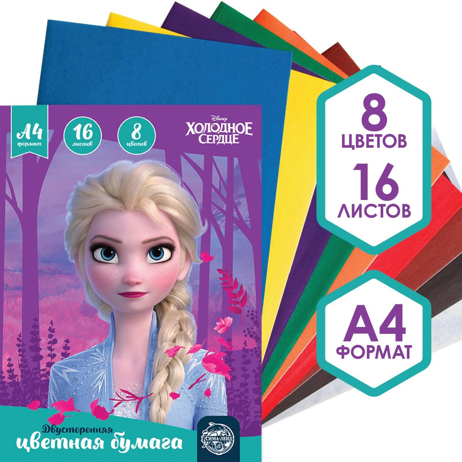 Бумага цветная двусторонняя «Холодное сердце», А4, 16 листов, 8 цветов, Холодное сердце