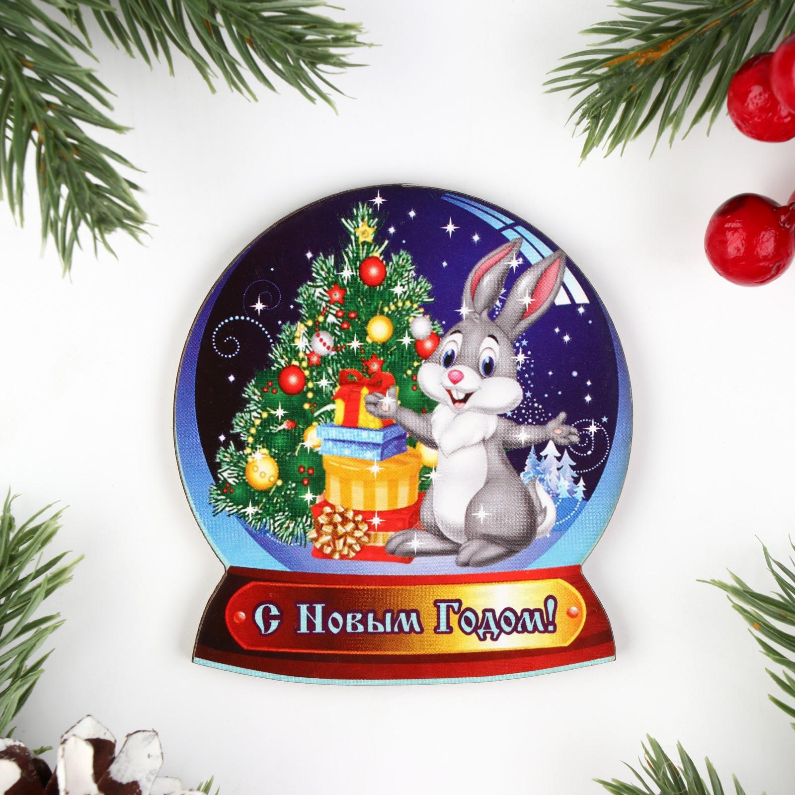 Магнит новогодний "С Новым Годом!" заяц в шаре, 7х8см