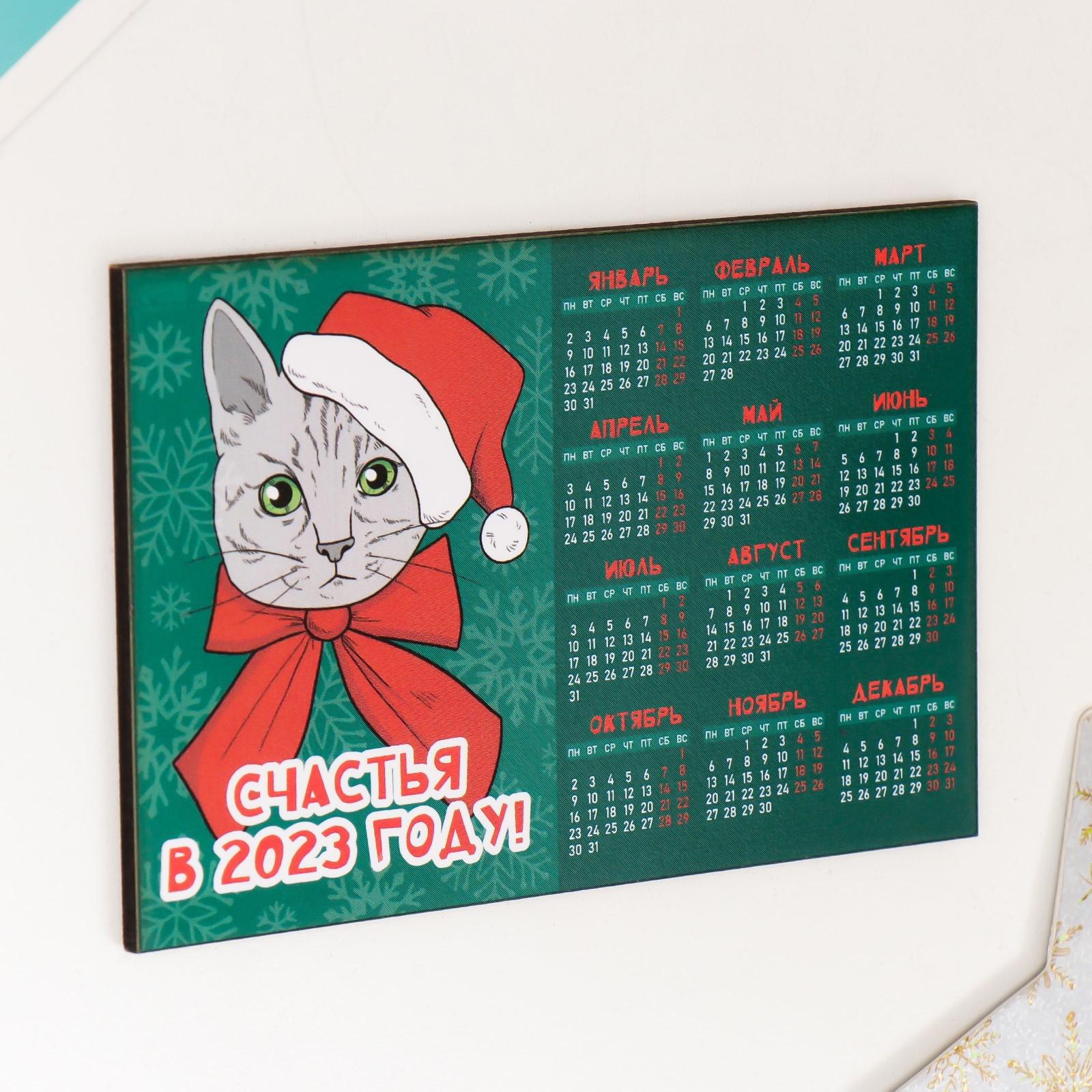 Магнит календарь "Кот с бантом" 12х8 см