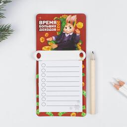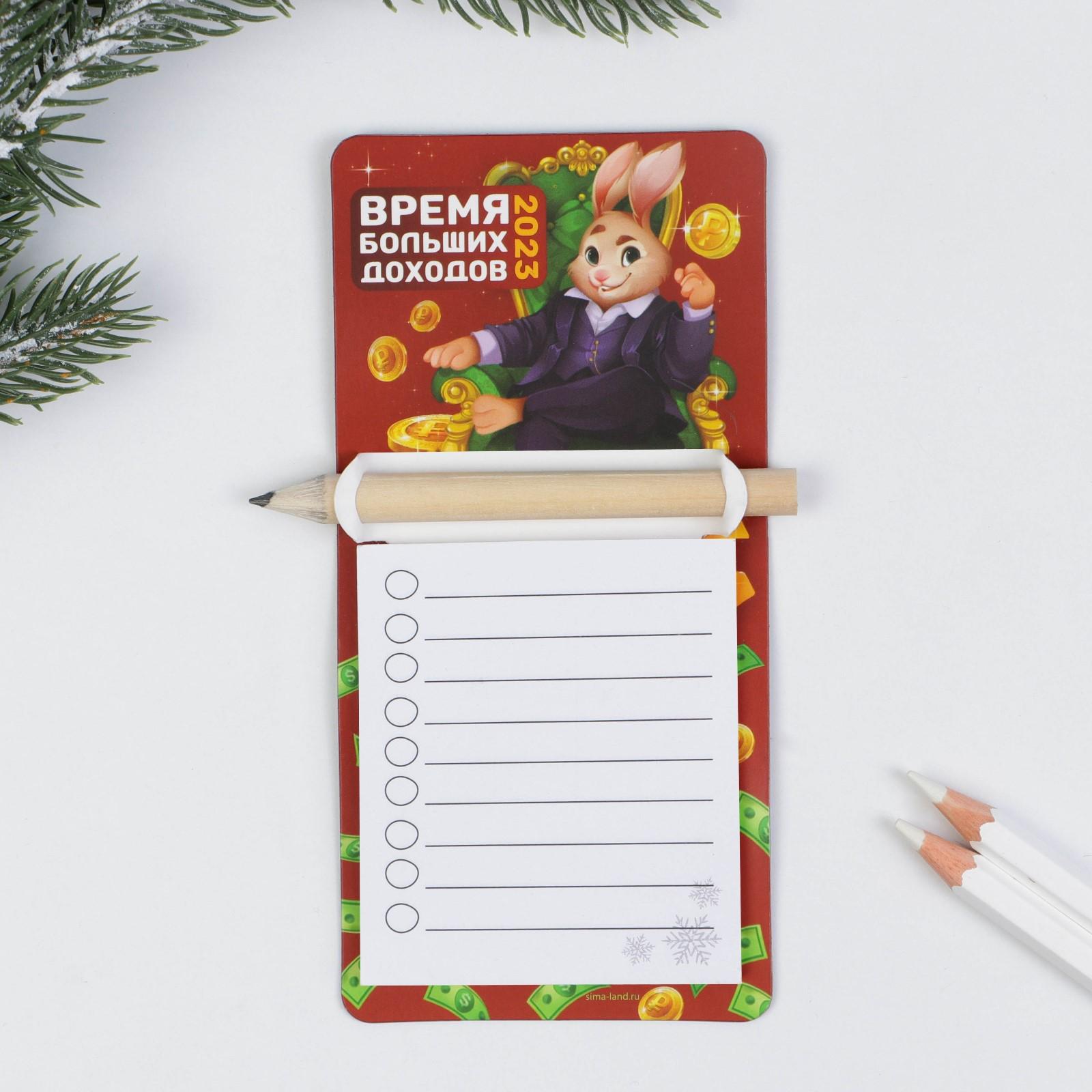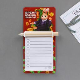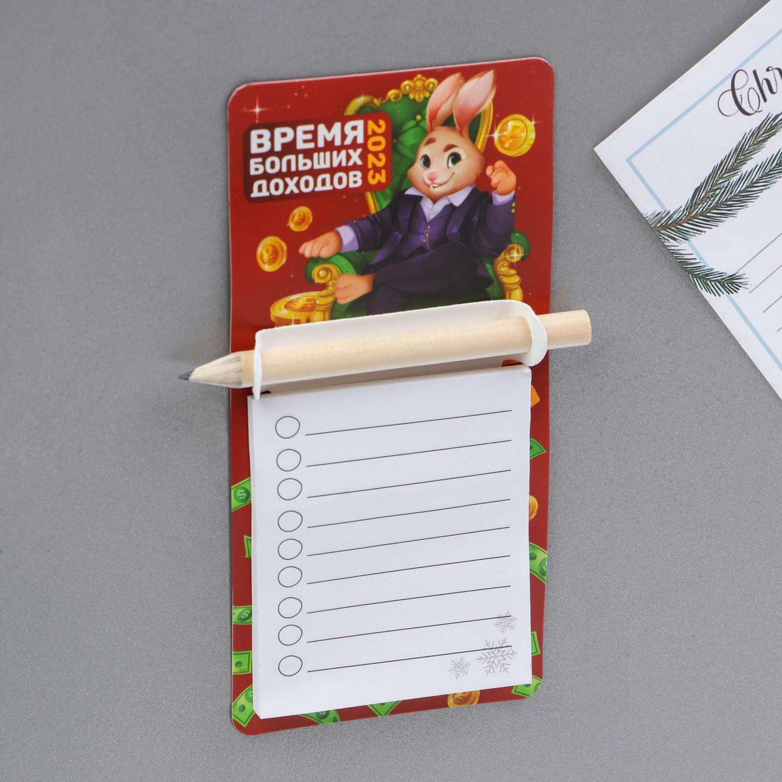 Магнит с блоком для записи и карандашом «Время больших доходов», 3 в 1, 7 х 14,4 см