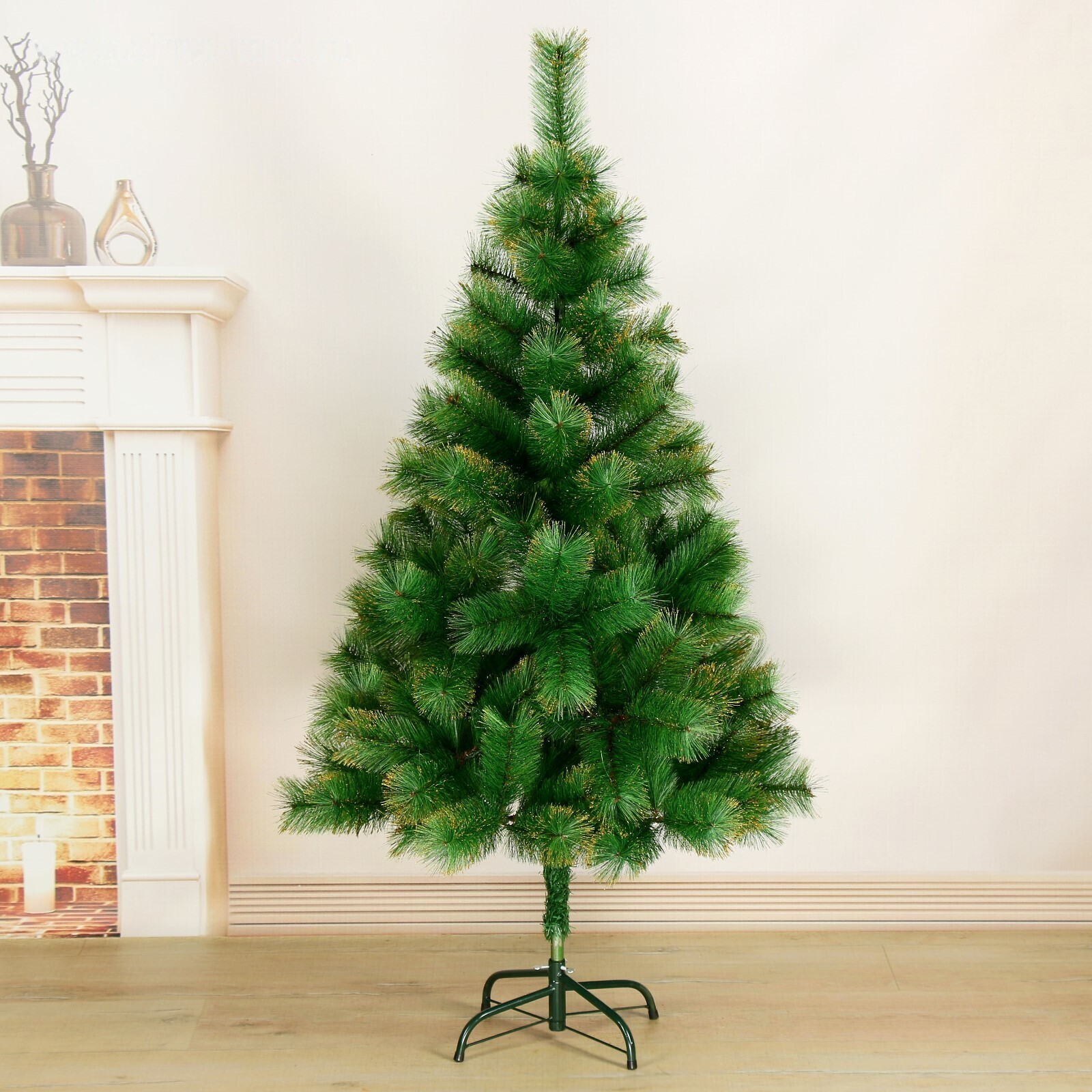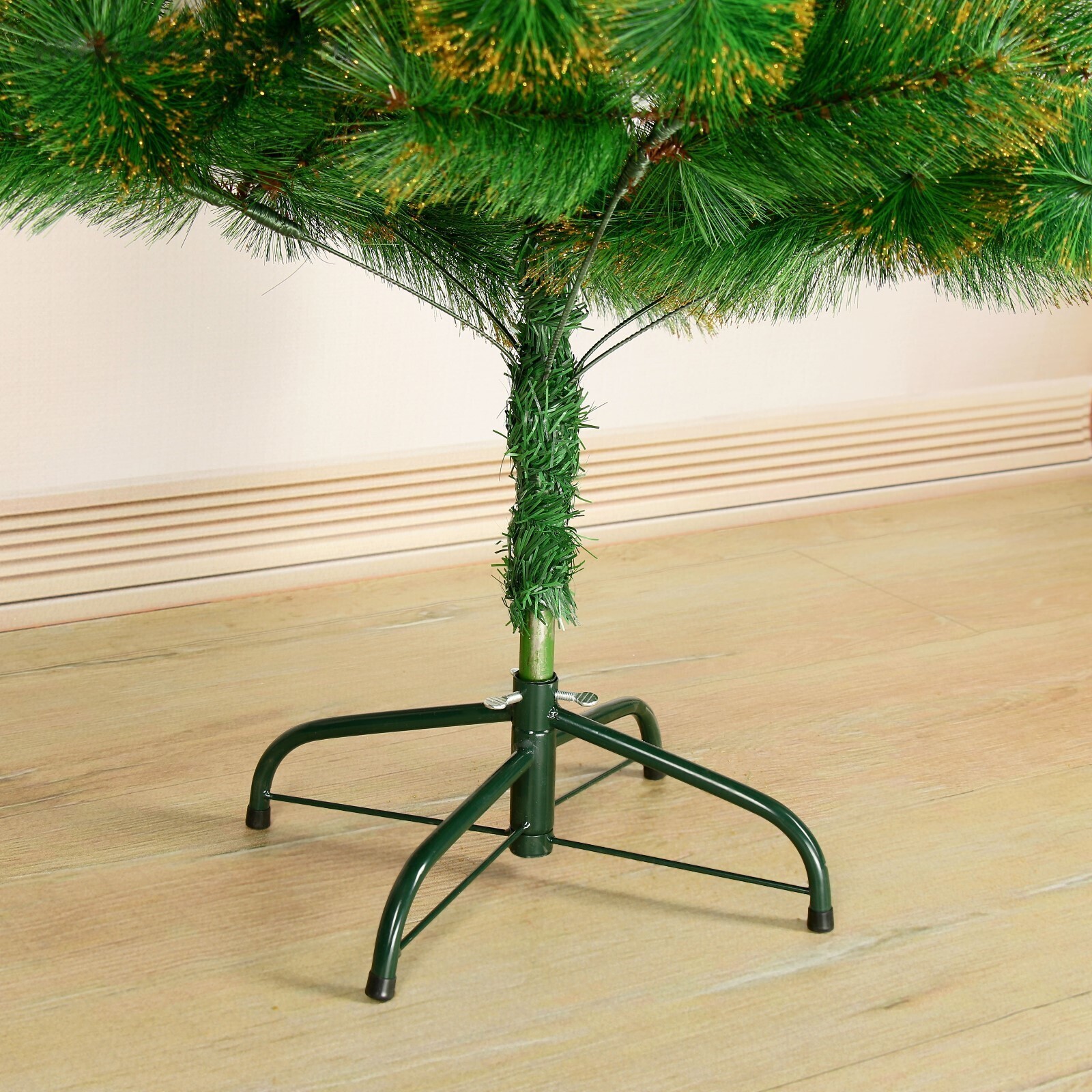 Кедр золото 150 см, d нижнего яруса 85 см, d иголок 10 см, 152 ветки, металл подставка