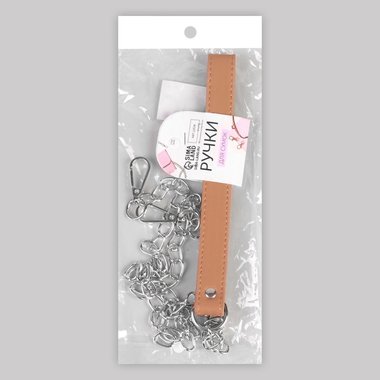 Ручка для сумки, с цепочками и карабинами, 120 × 1,8 см, цвет бежевый
