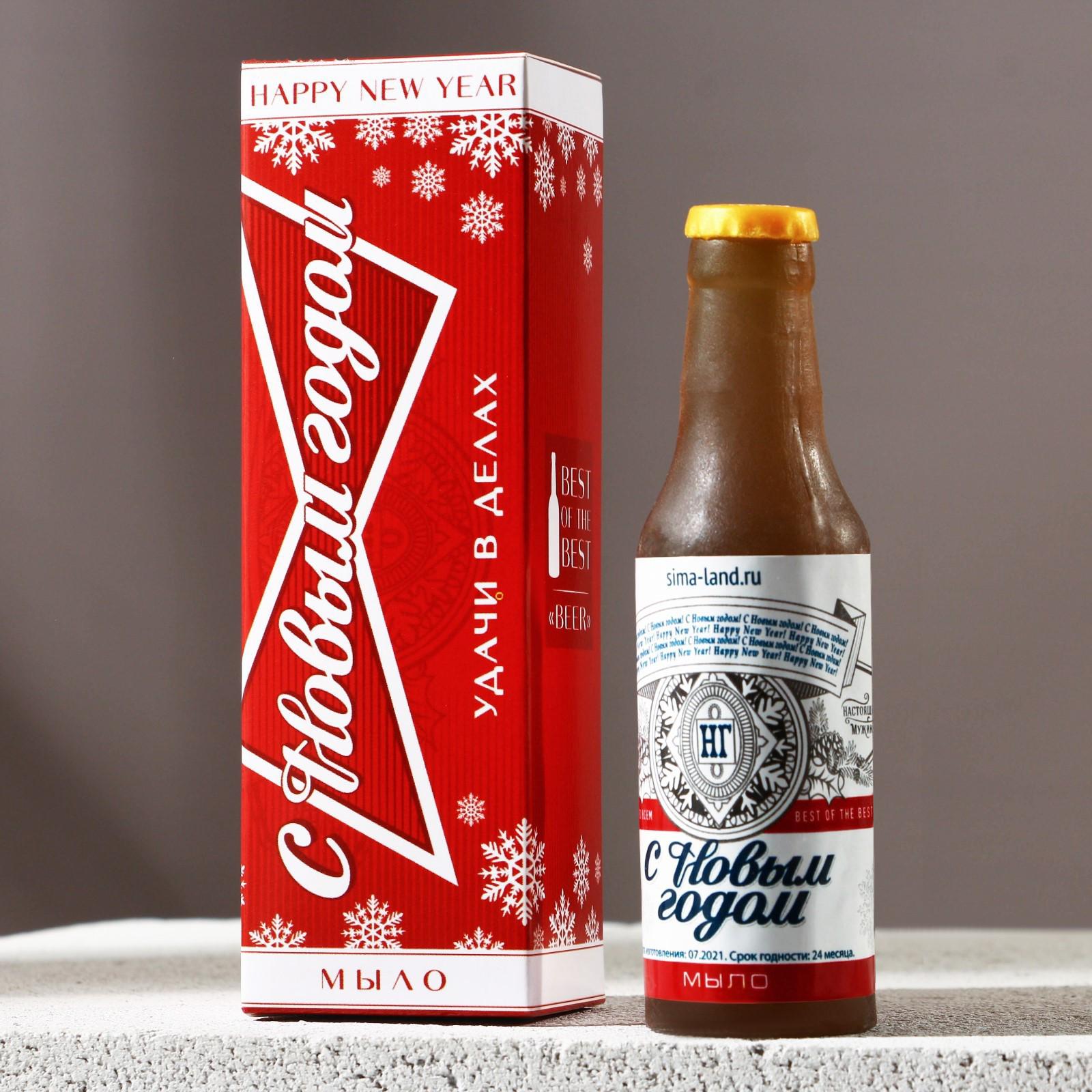 Фигурное мыло ручной работы в форме бутылки пива "С Новым годом!" 78 г, аромат парфюм