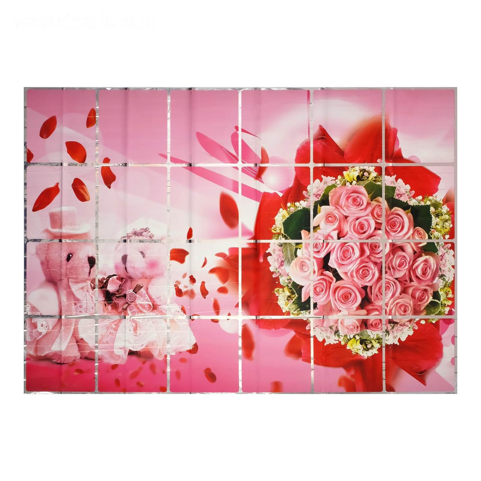 Наклейка на кафельную плитку "Букет роз и мишки" 90х60 см