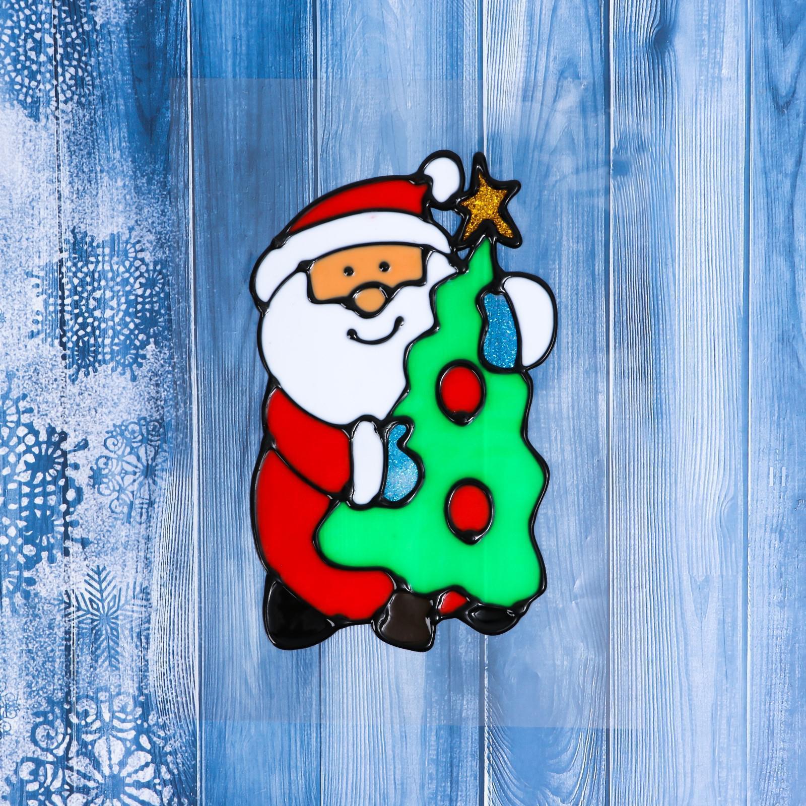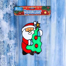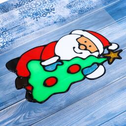 Наклейка на стекло "Дед Мороз с ёлкой" 9х14 см