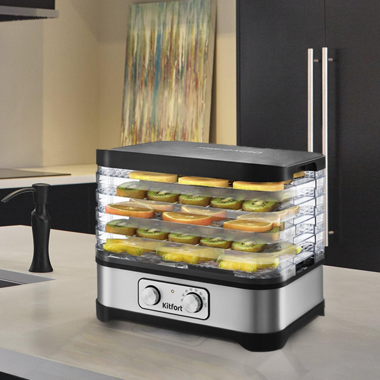 Сушилка для овощей и фруктов Kitfort KT-1912, 250 Вт, 5 ярусов, серебристая