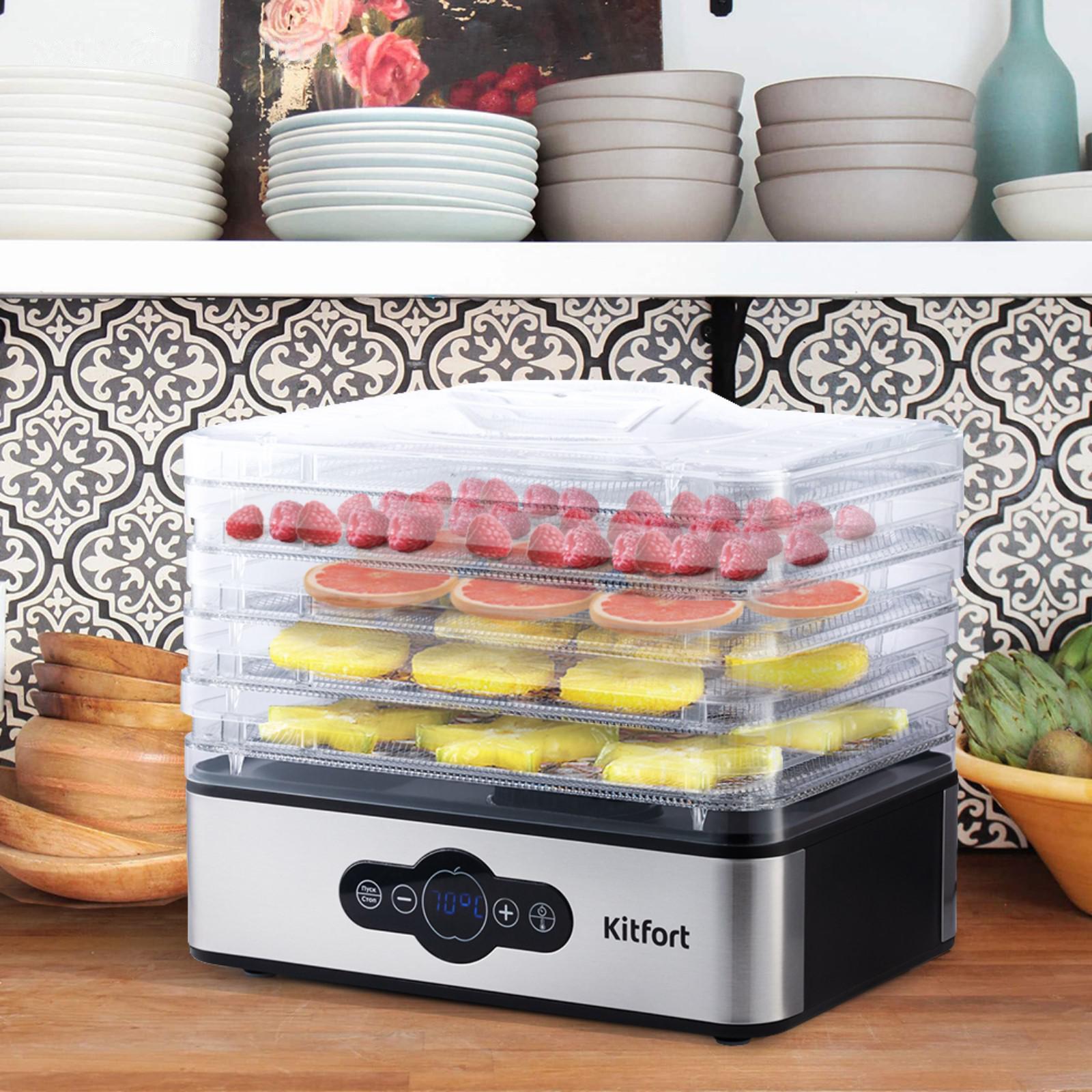 Сушилка для овощей и фруктов Kitfort КТ-1914, 240 Вт, 5 ярусов, 20.5 х 20.9, серебристая