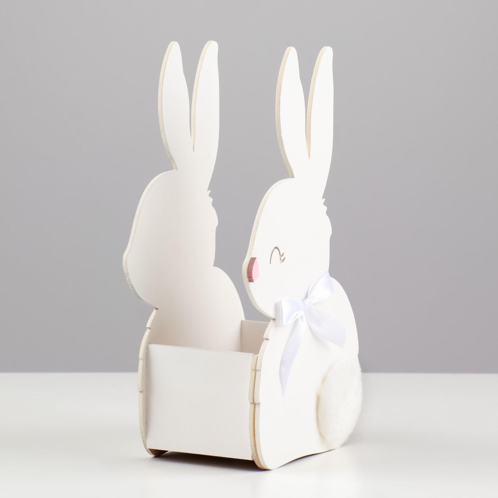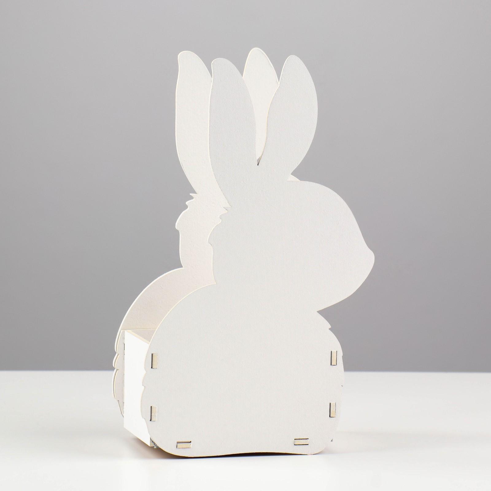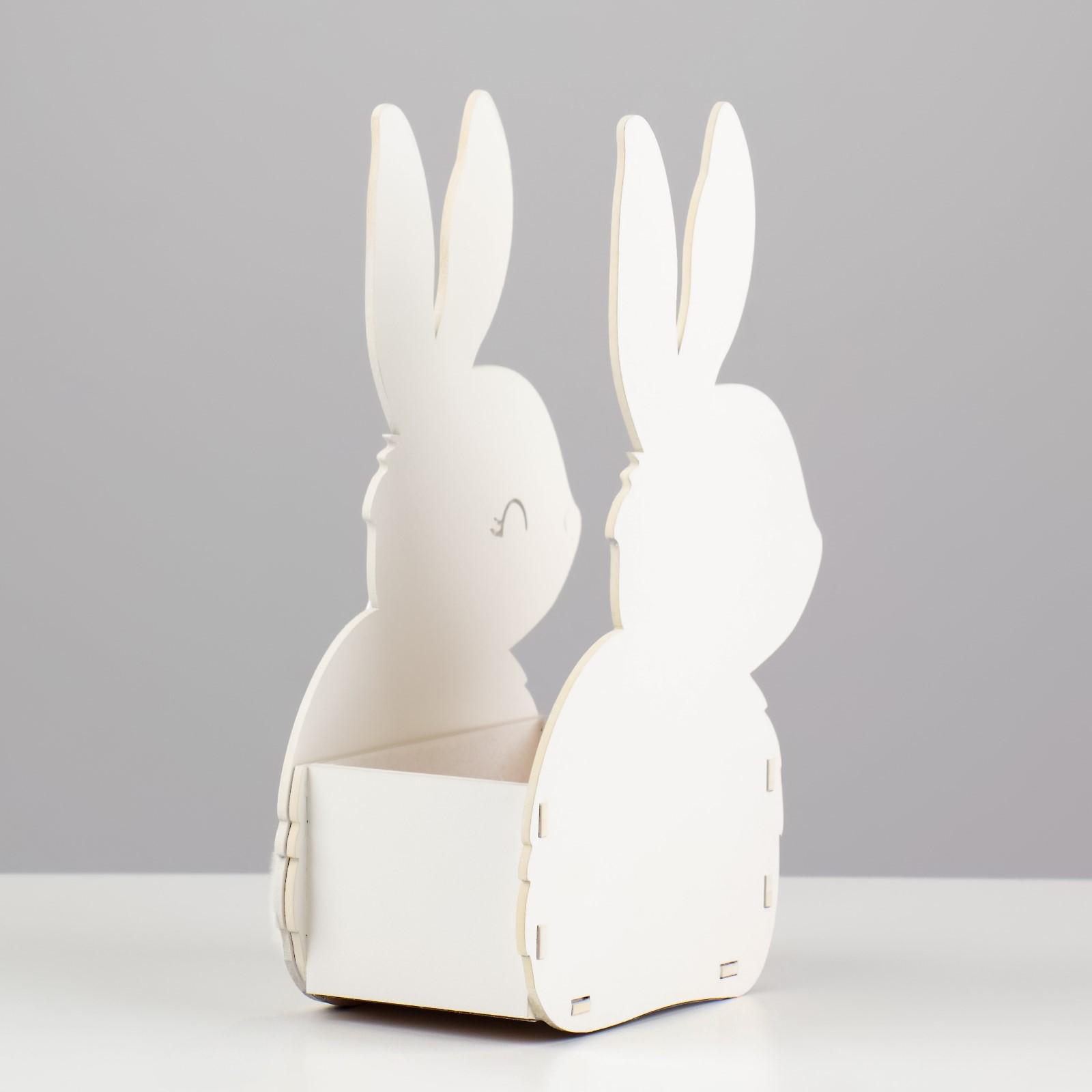 Кашпо деревянное 13х7.5х22 см "Зайка", белый