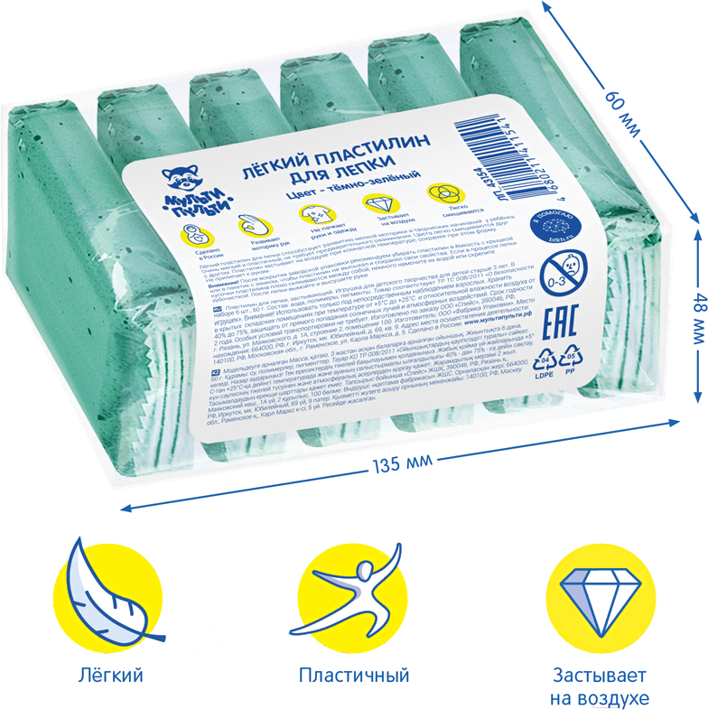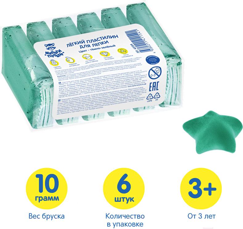 Пластилин легкий Мульти-пульти ЛП_43154 (6шт, темно-зеленый)