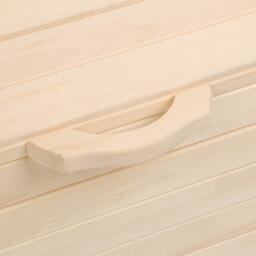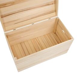 Сундук удобно использовать для хранения необходимых вещей: одежда, предметы бытового назначения, овощи и фрукты. Изделие изготовлено из натурального дерева. Оно выдержит перепады температуры, высокую влажность и прочие экстремальные условия.