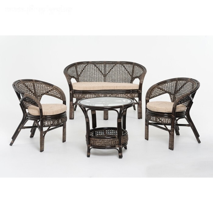 Набор мебели, 4 предмета: диван, 2 кресла, стол, с подушкой, натуральный ротанг, цвет тёмно-коньячный, 02/15