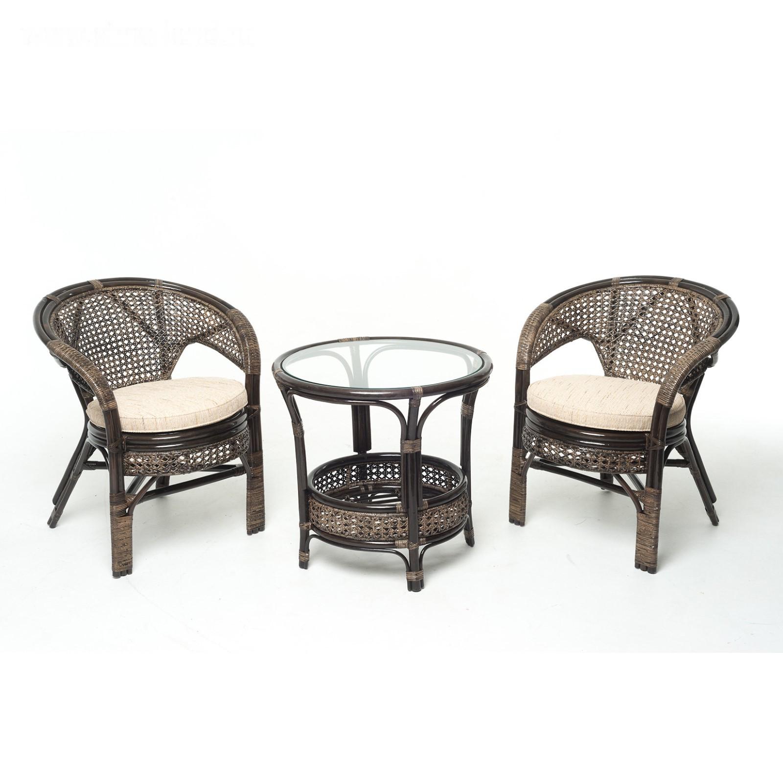 Набор мебели, 3 предмета: 2 кресла, стол, с подушкой, натуральный ротанг, цвет тёмно-коньячный, 02/15