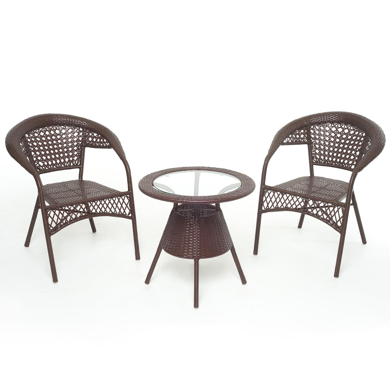 Набор мебели BROWN, 3 предмета: стол, 2 кресла, искусственный ротанг, коричневый, GG-04-07-04