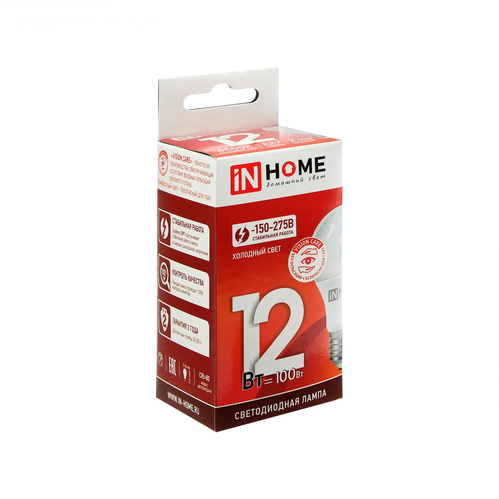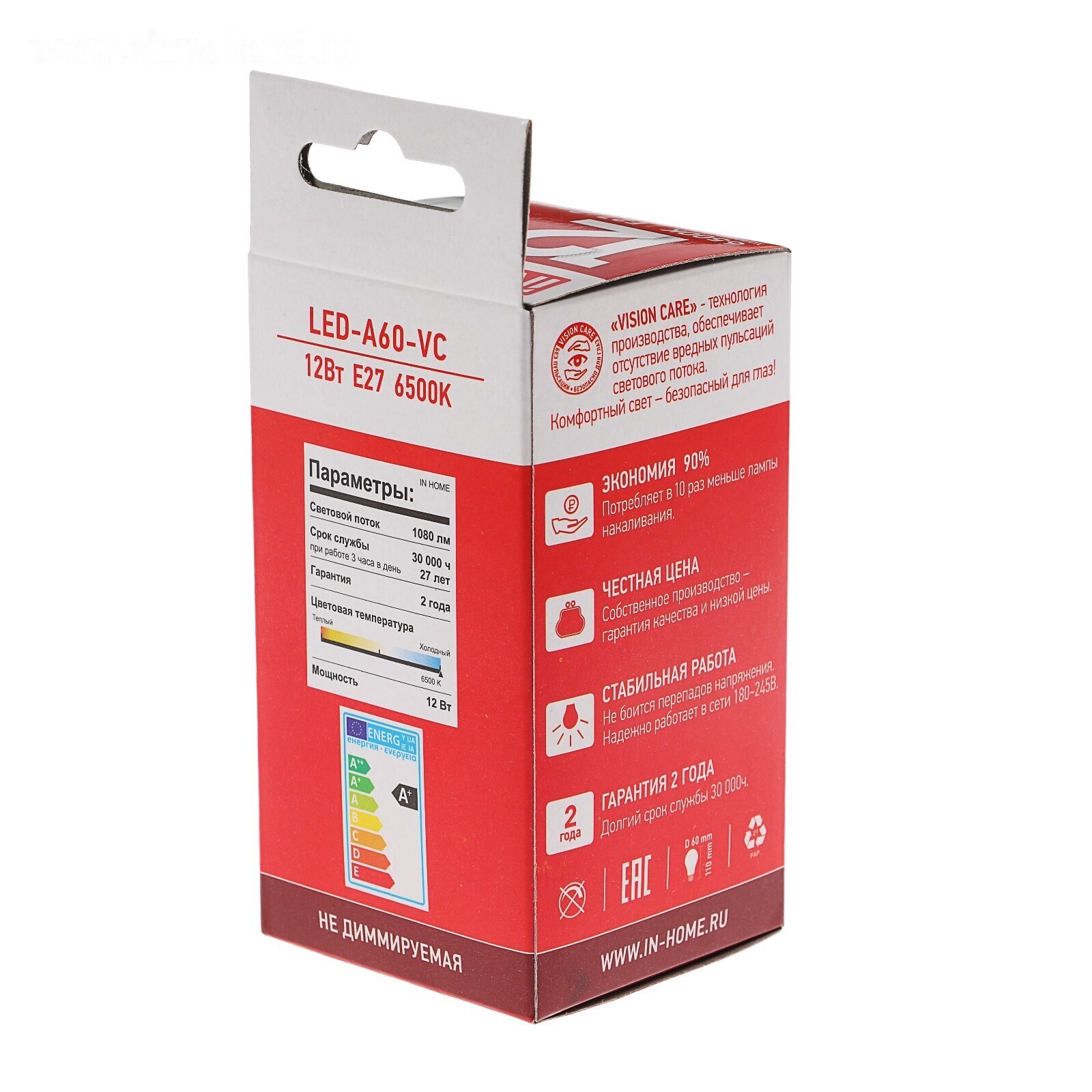 Лампа светодиодная IN HOME LED-A60-VC, Е27, 12 Вт, 230 В, 6500 К, 1080 Лм