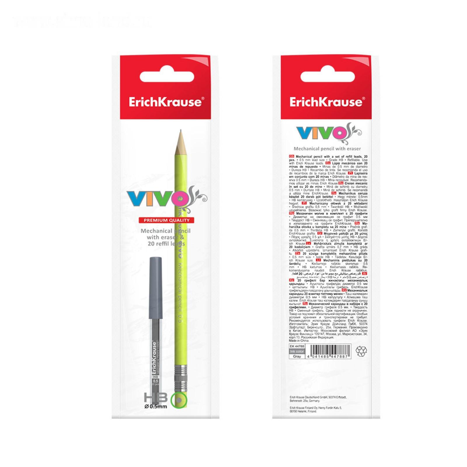 Набор карандаш механический НВ, 0.5 мм, ErichKrause Vivo + 20 грифелей, микс (цена за 1 шт.)