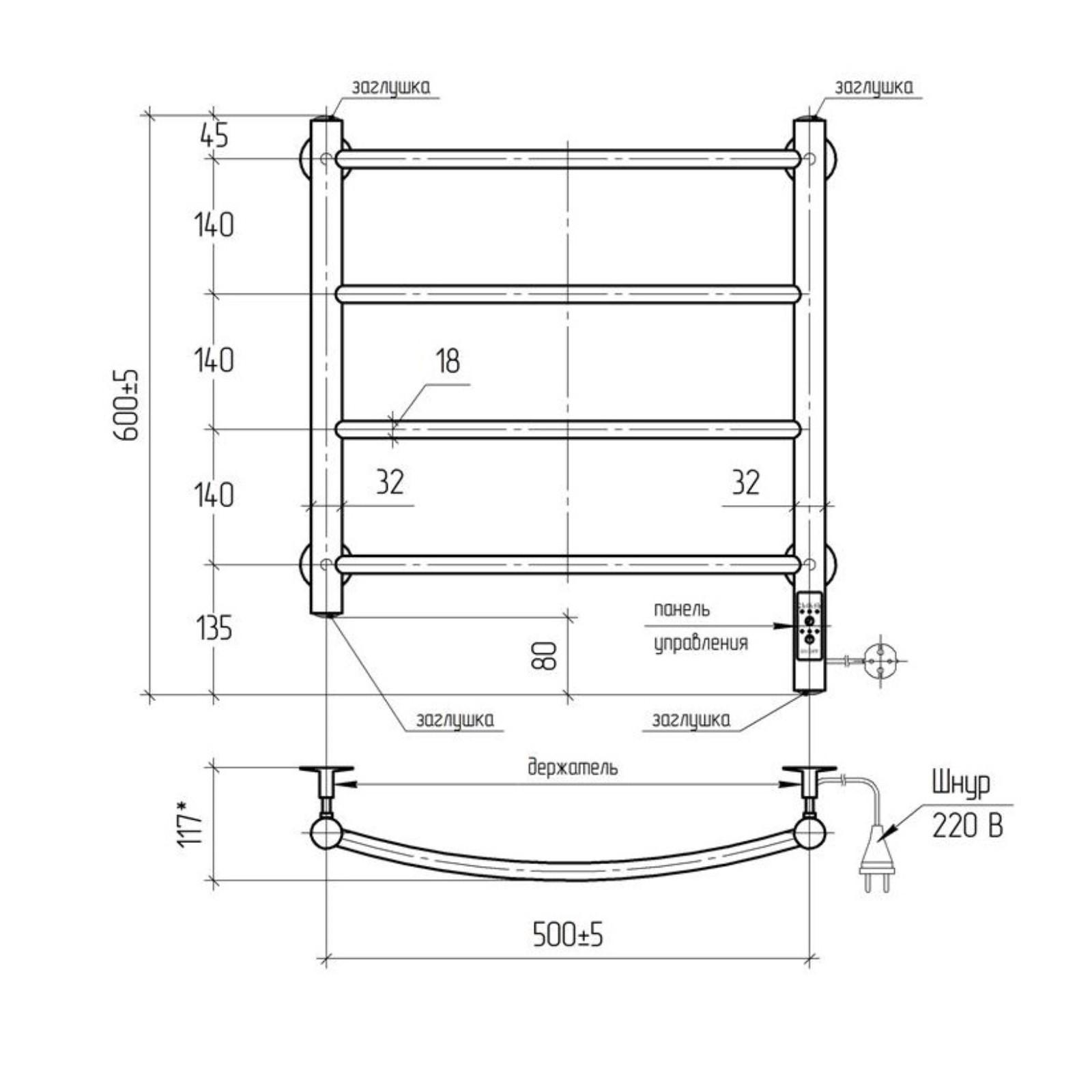 Полотенцесушитель электрический "ТЕРА" РЕБРО ПСН-10-02д, 500х600 мм, диммер, хром