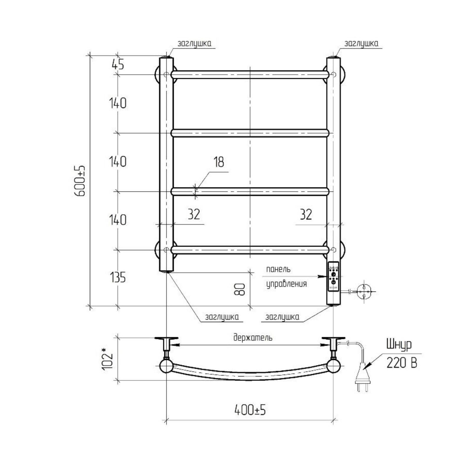 Полотенцесушитель электрический "ТЕРА" РЕБРО ПСН-10-01д, 400х600 мм, диммер, хром