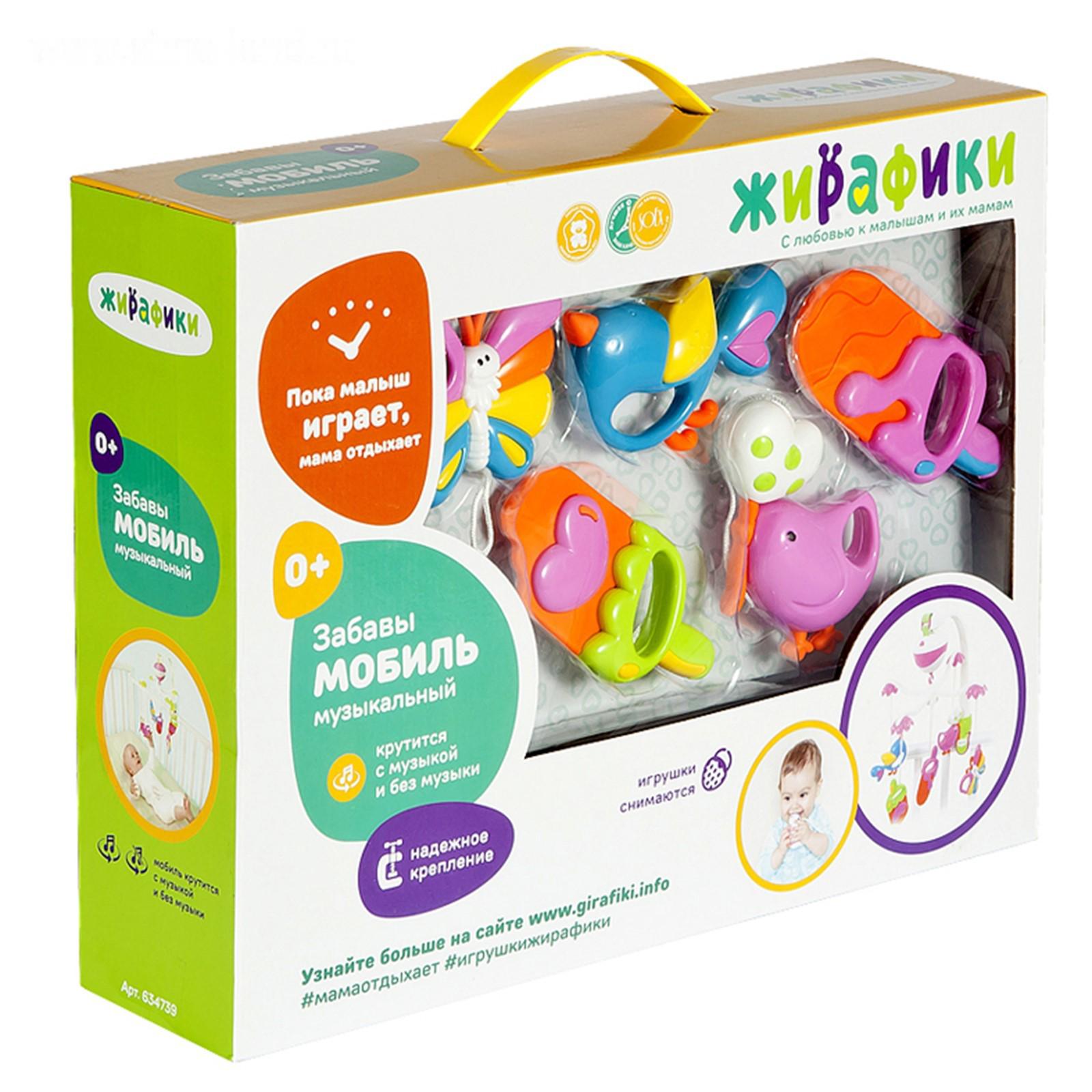Мобиль — одна из первых игрушек для новорождённых и тренажер для развития визуального восприятия и слуховых ощущений. К изделию прикреплены забавные фигурки, которые вращаются. Пытаясь следить за ними, малыш учится фокусировать взгляд на объекте.