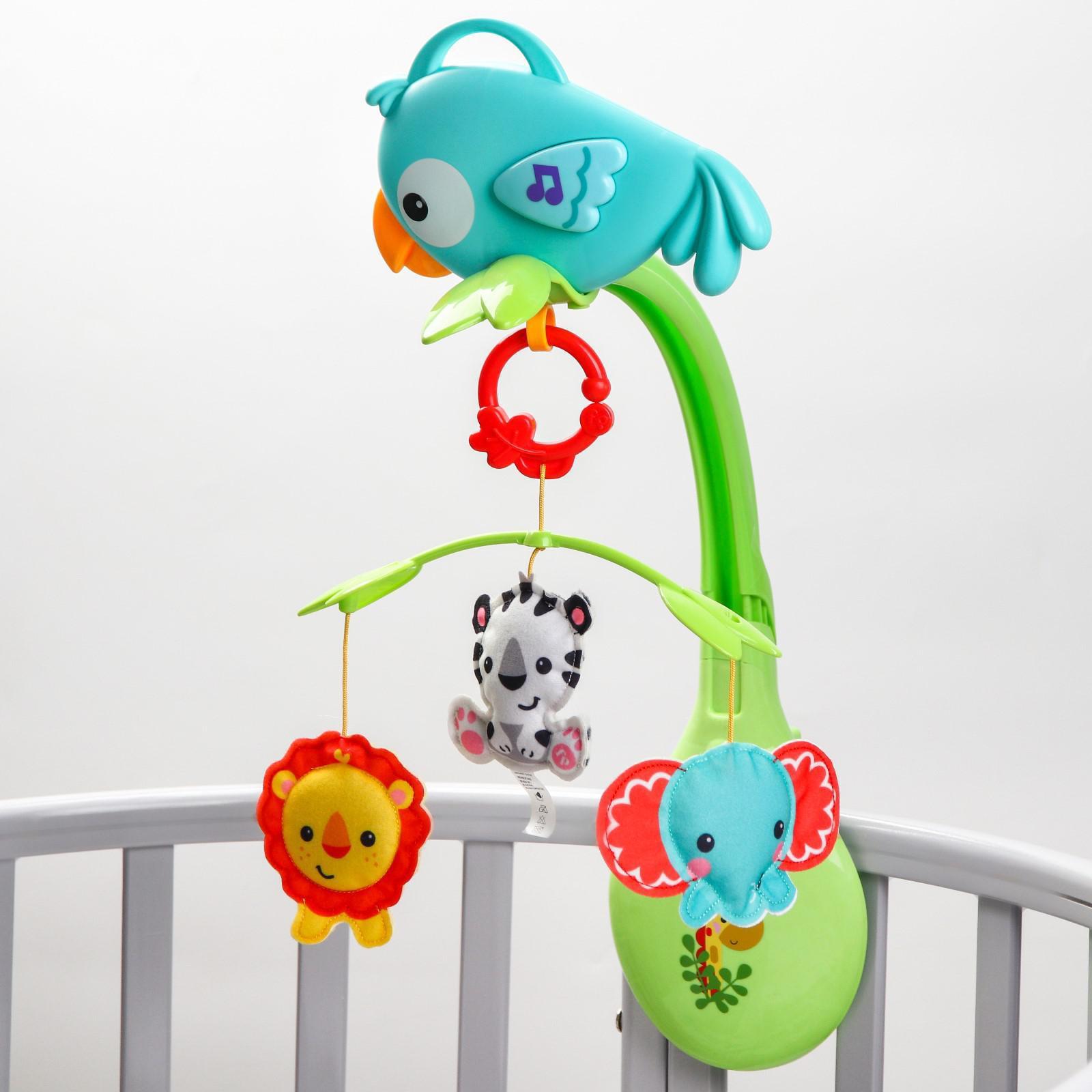 Мобиль музыкальный «Тропический лес. Попугайчик», 3 игр., на батарейках, съемный муз.блок