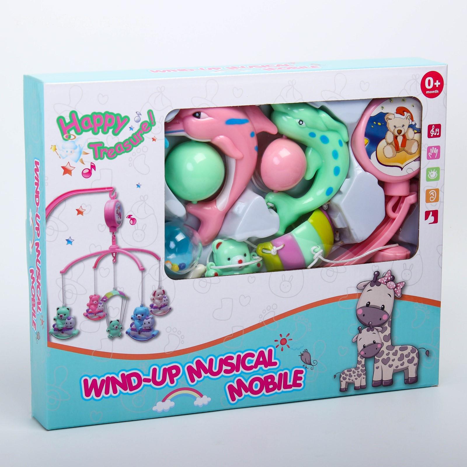 Мобиль музыкальный «Дельфинчики», заводной, наклейка СЮРПРИЗ