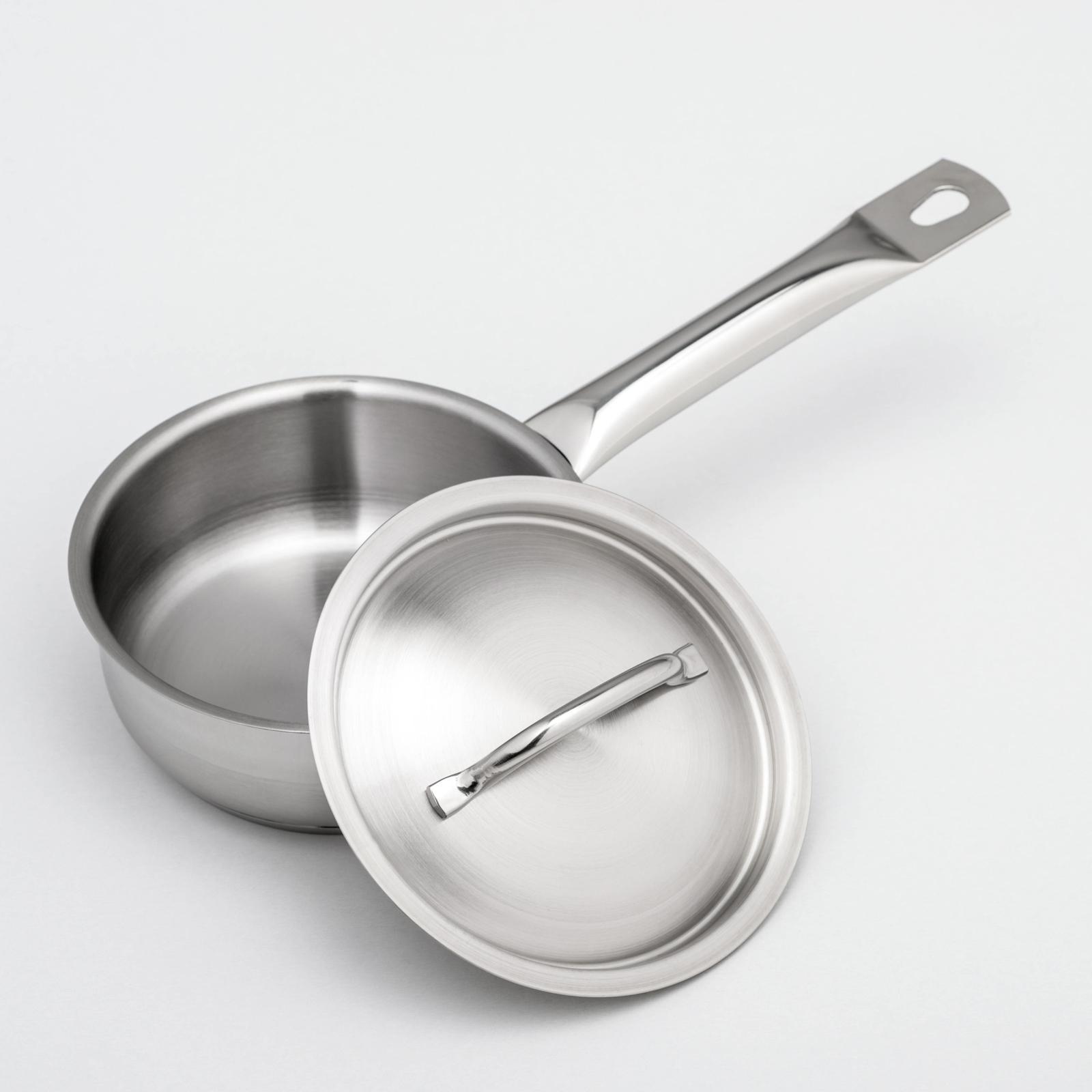 Сотейник, 860 мл, d=14 см, h=5,5 см, металлическая крышка, тройное дно, индукция, цвет серебряный