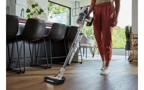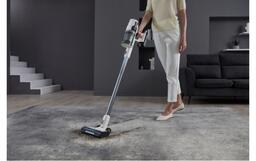 Пылесос эффективно справляется с уборкой и имеет полный комплект насадок для различных задач: универсальная электрощетка, мягкая электрощетка для твердого пола, мини-электрощетка для уборки шерсти животных, щелевая насадка, насадка-щетка, насадка 2-в-1 (удобна для уборки в салоне автомобиля). Модель можно использовать и как вертикальный, и как ручной пылесос. Мощность 500 Вт и расход воздуха 21 л/с обеспечивают высокую производительность инструмента. Пылесос работает до 45 минут на одном заряде аккумулятора и заряжается всего за 30 минут.