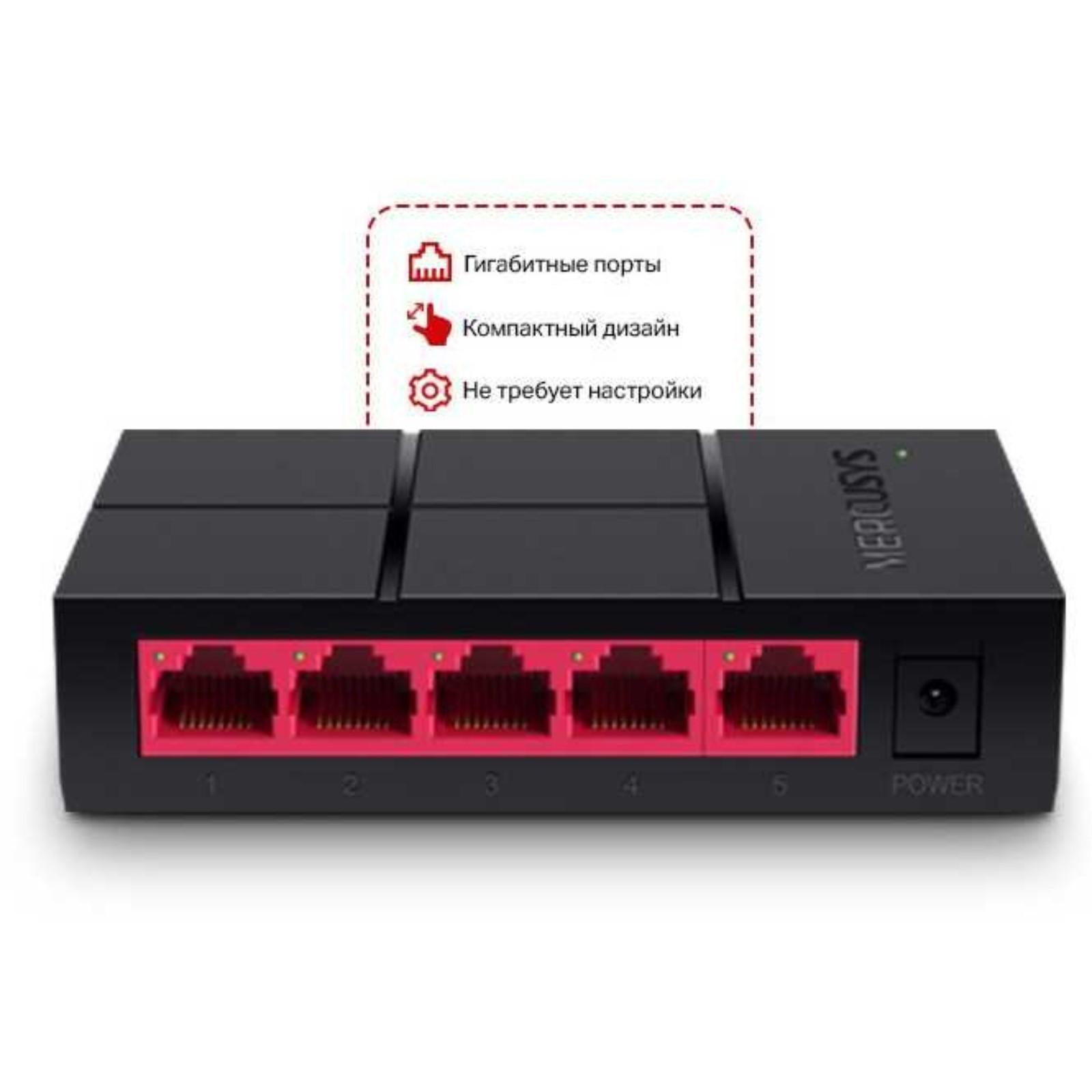 Коммутатор Mercusys MS105G, неуправляемый, 5х10/100/1000BASE-T