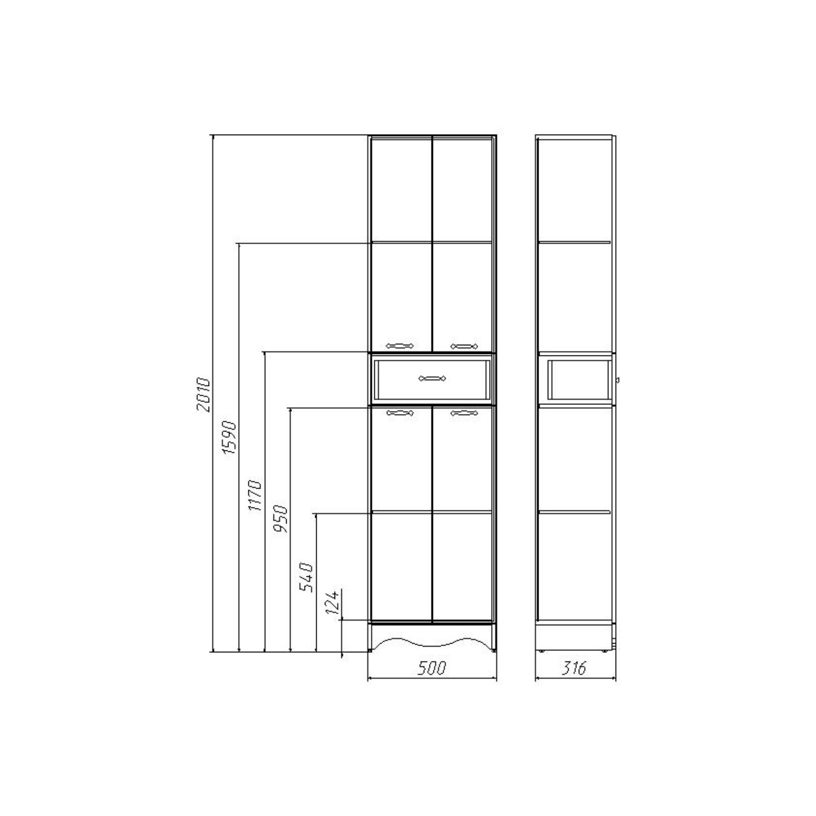 Пенал напольный 50 Rich Белое Дерево с верхним ящиком В1