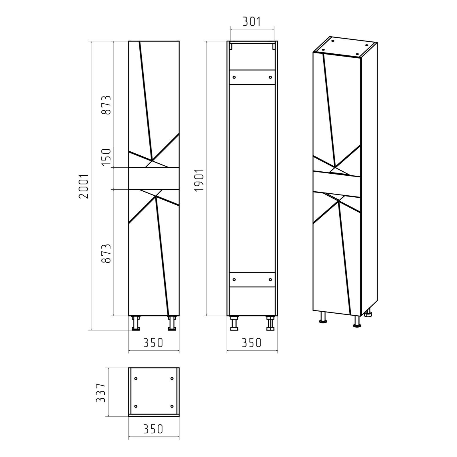 Пенал с ящиком правый на ножках "Грани - 35" эмаль, 34 х 34 х 190 см