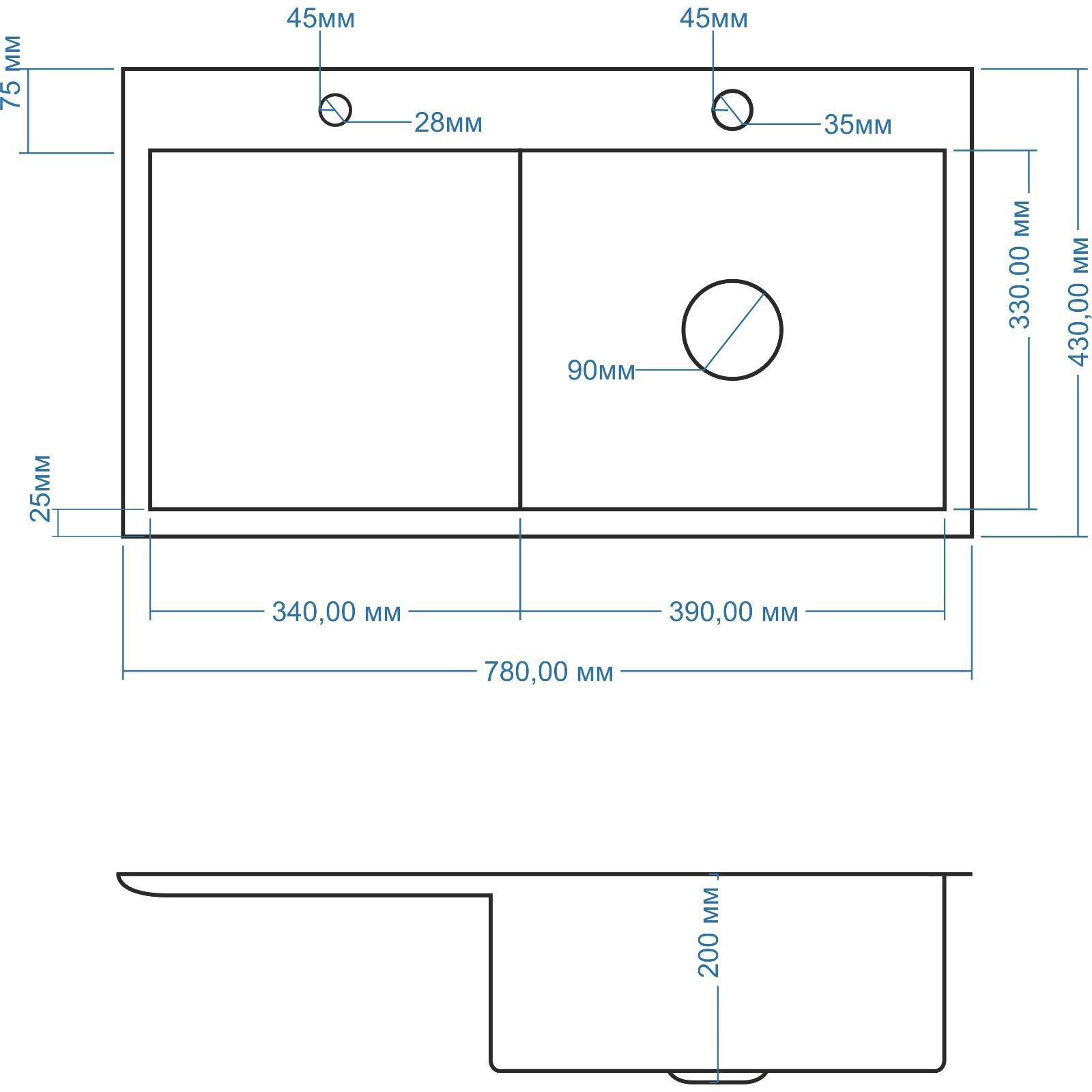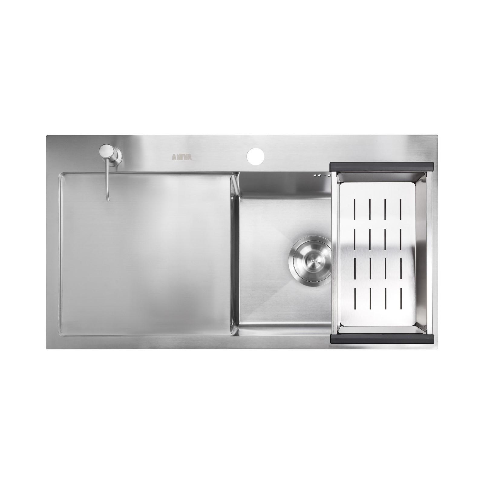 Мойка кухонная AVINA HM 7843 R satin, врезная, выпуск 3 1/2, правая, 780х480х210 мм, сатин