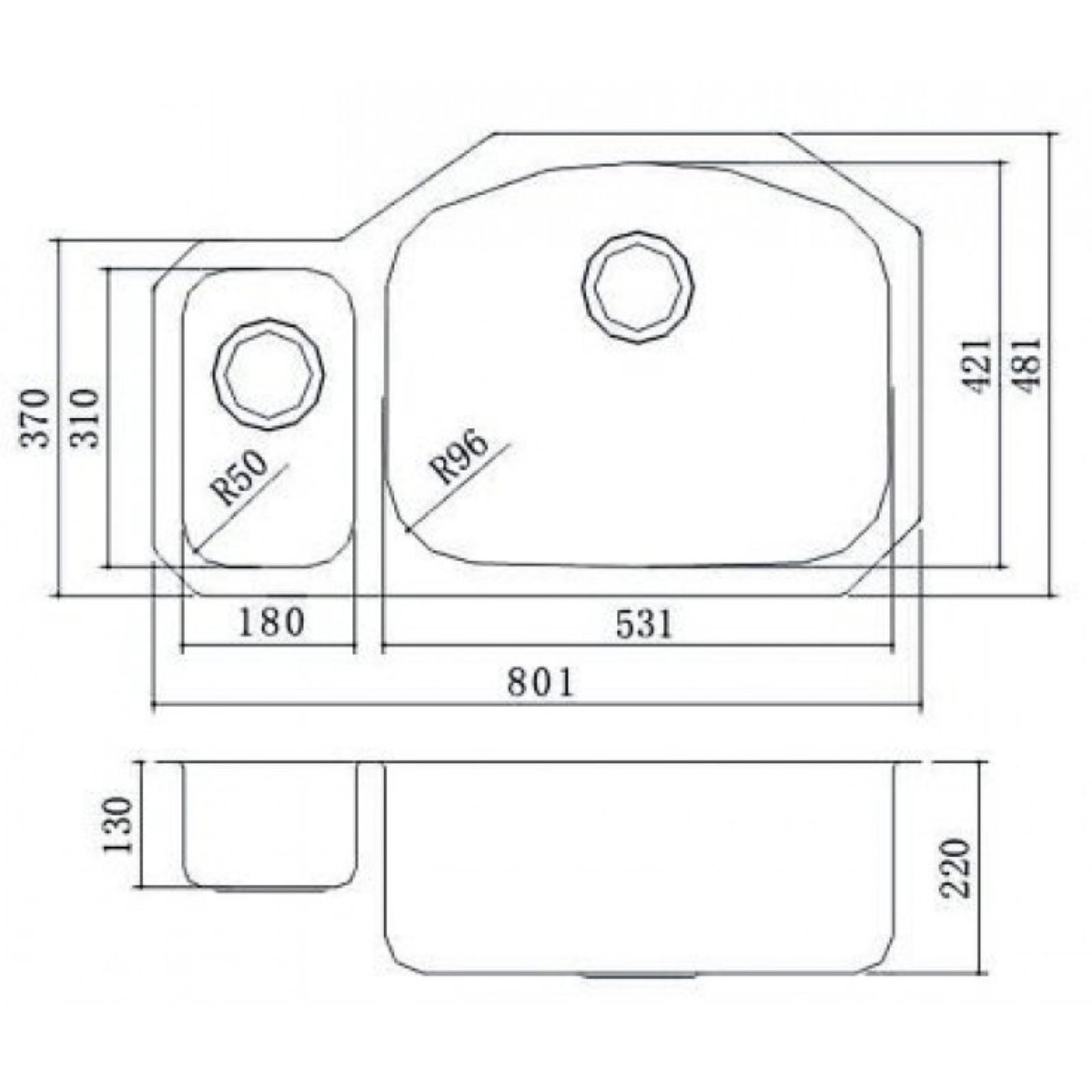 Мойка кухонная OULIN OL-U601, врезная, 801 х 481 мм, двойная, сатин