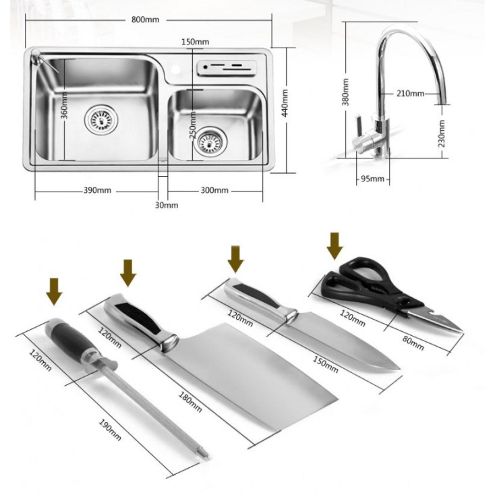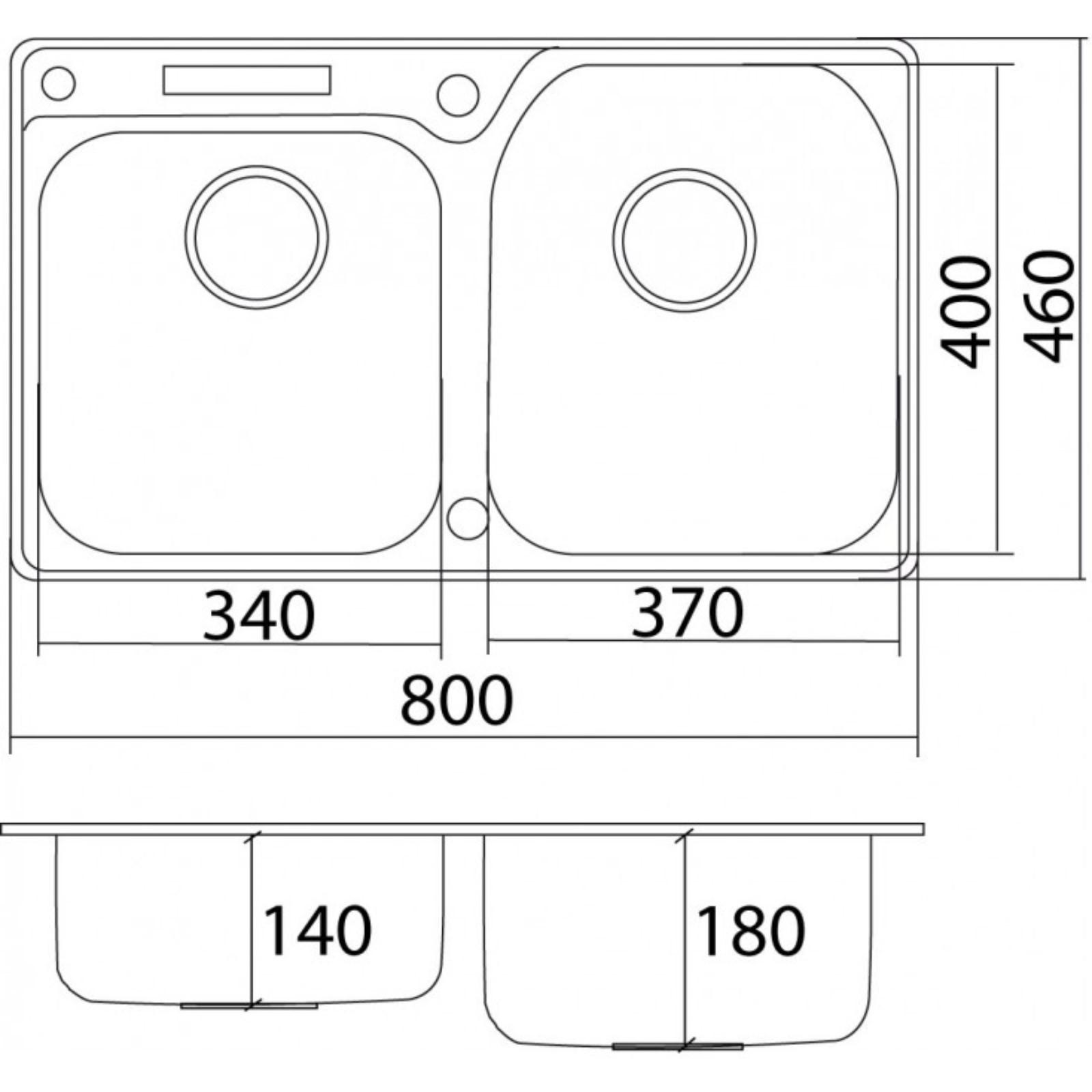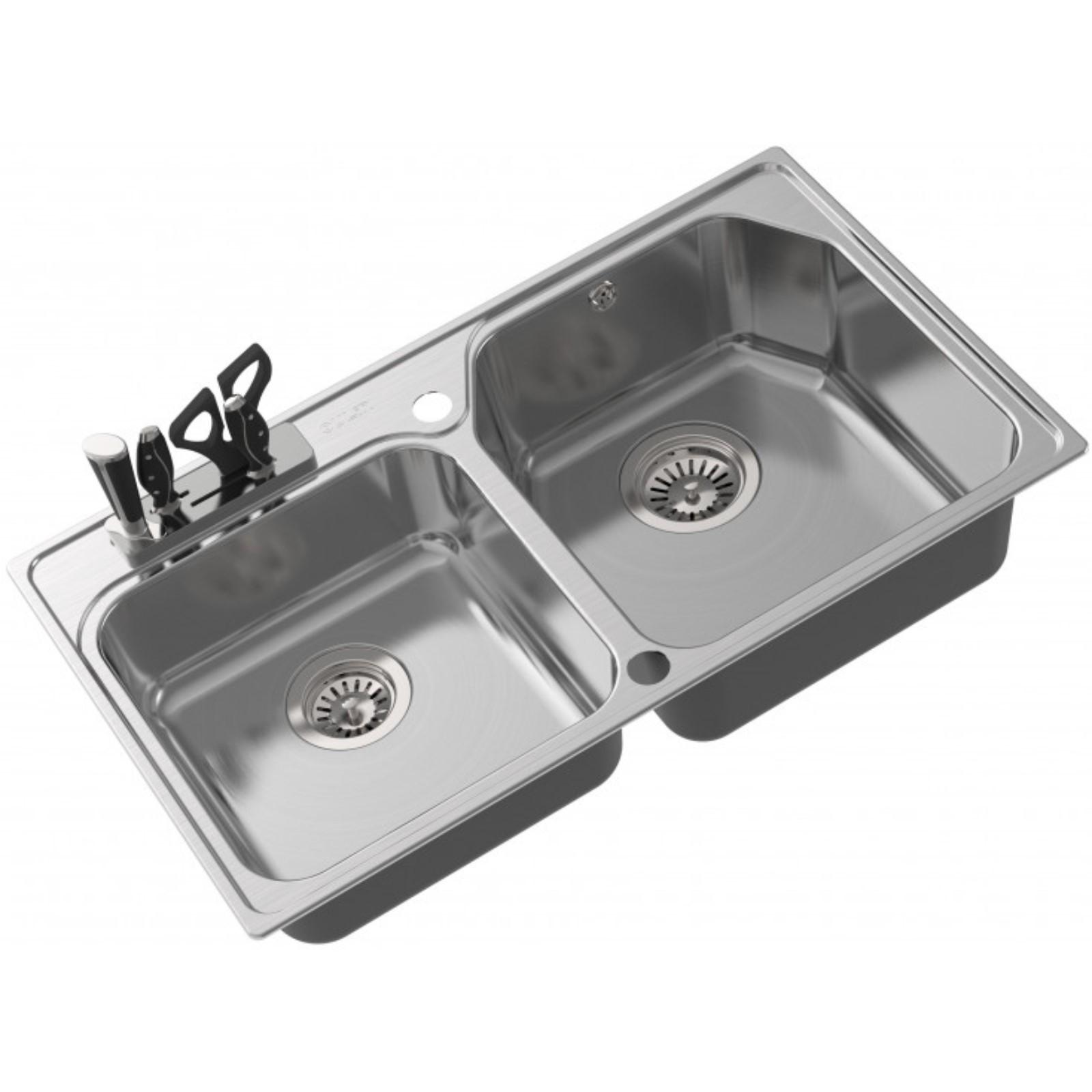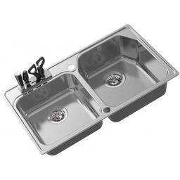 Мойка кухонная OULIN OL-H9910, врезная, 800 х 460 мм, прямоугольная, двойная, сатин