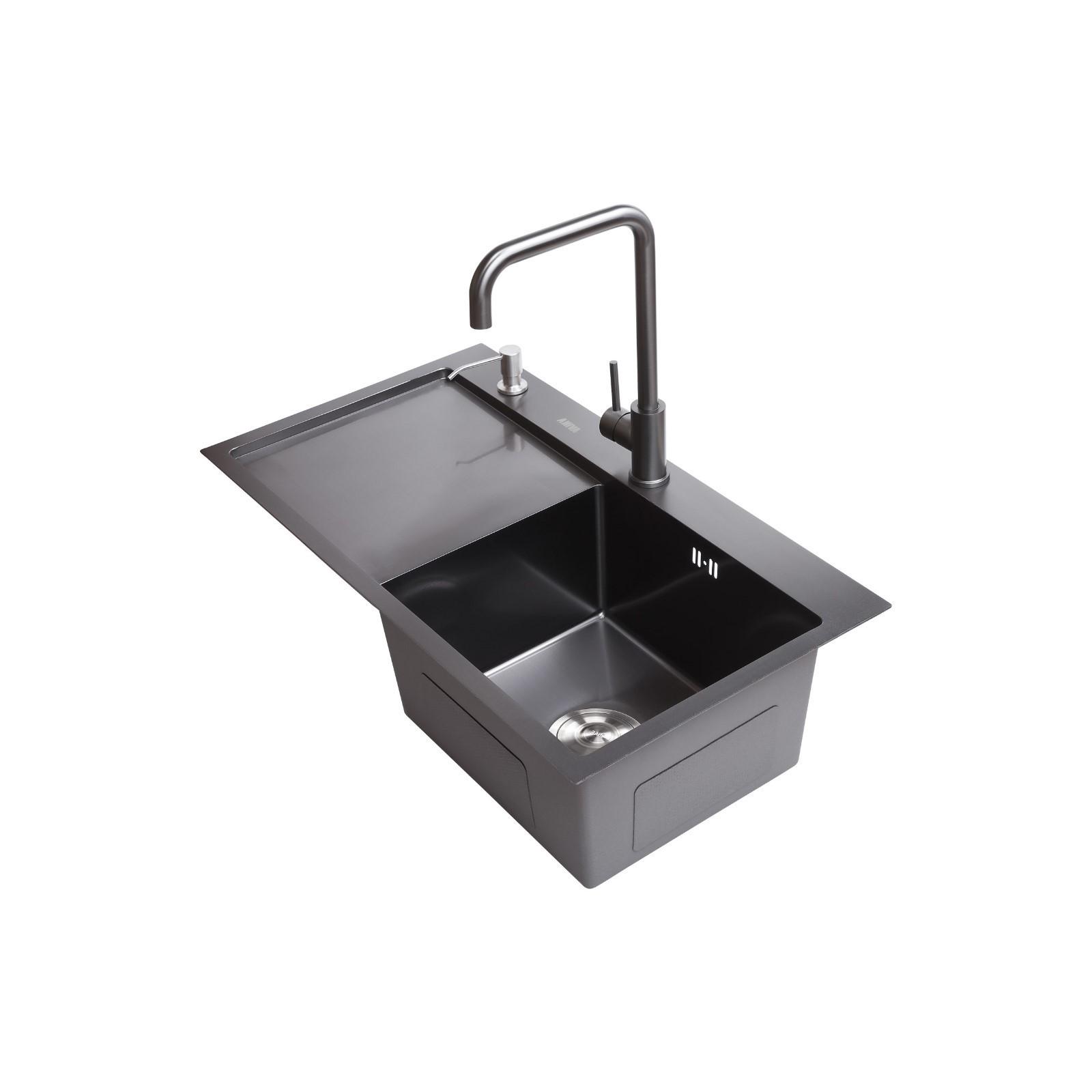Мойка кухонная AVINA HM 7843 black, врезная, выпуск 3 1/2, правая, 780х430х210 мм, черный