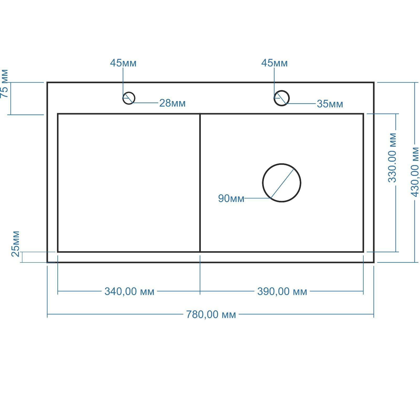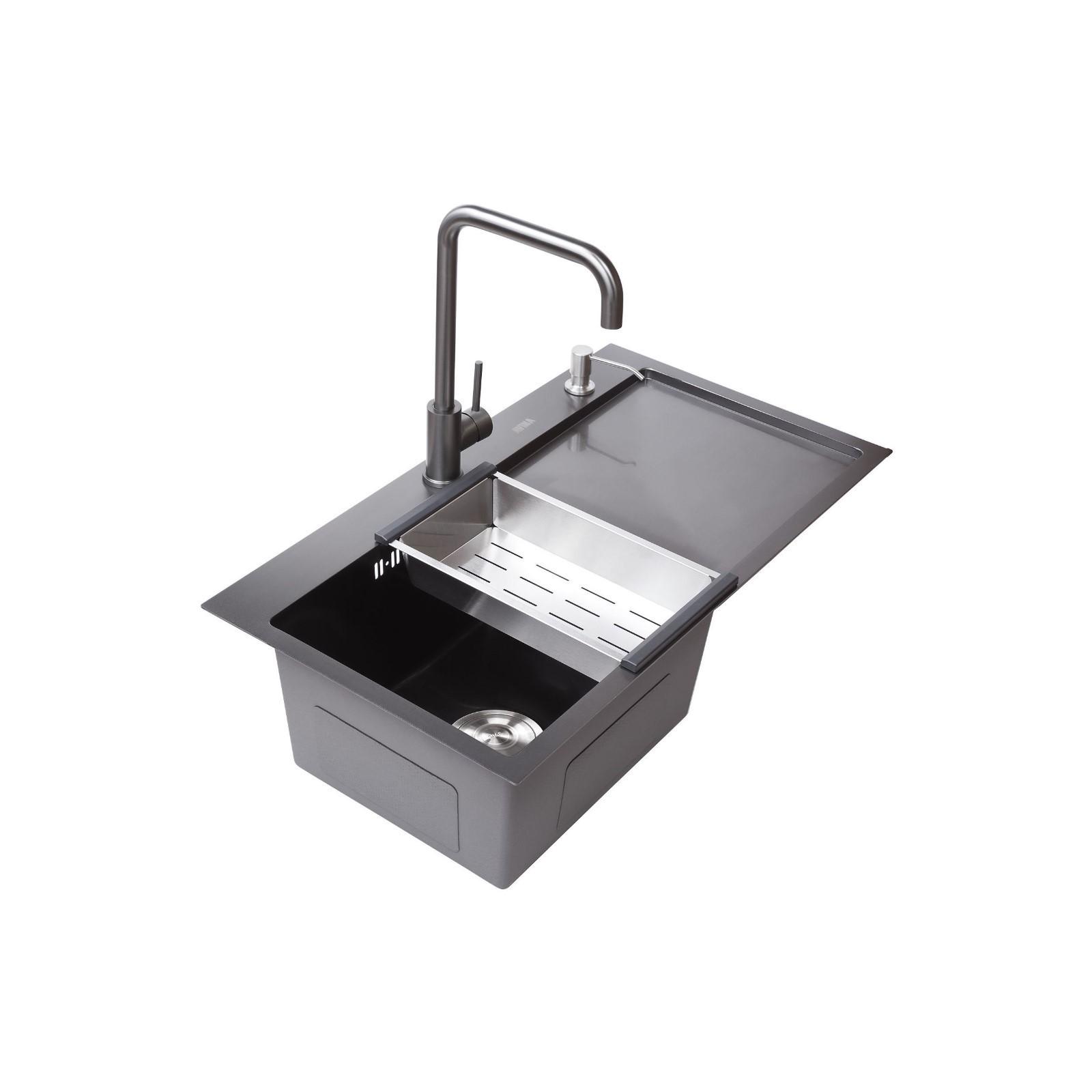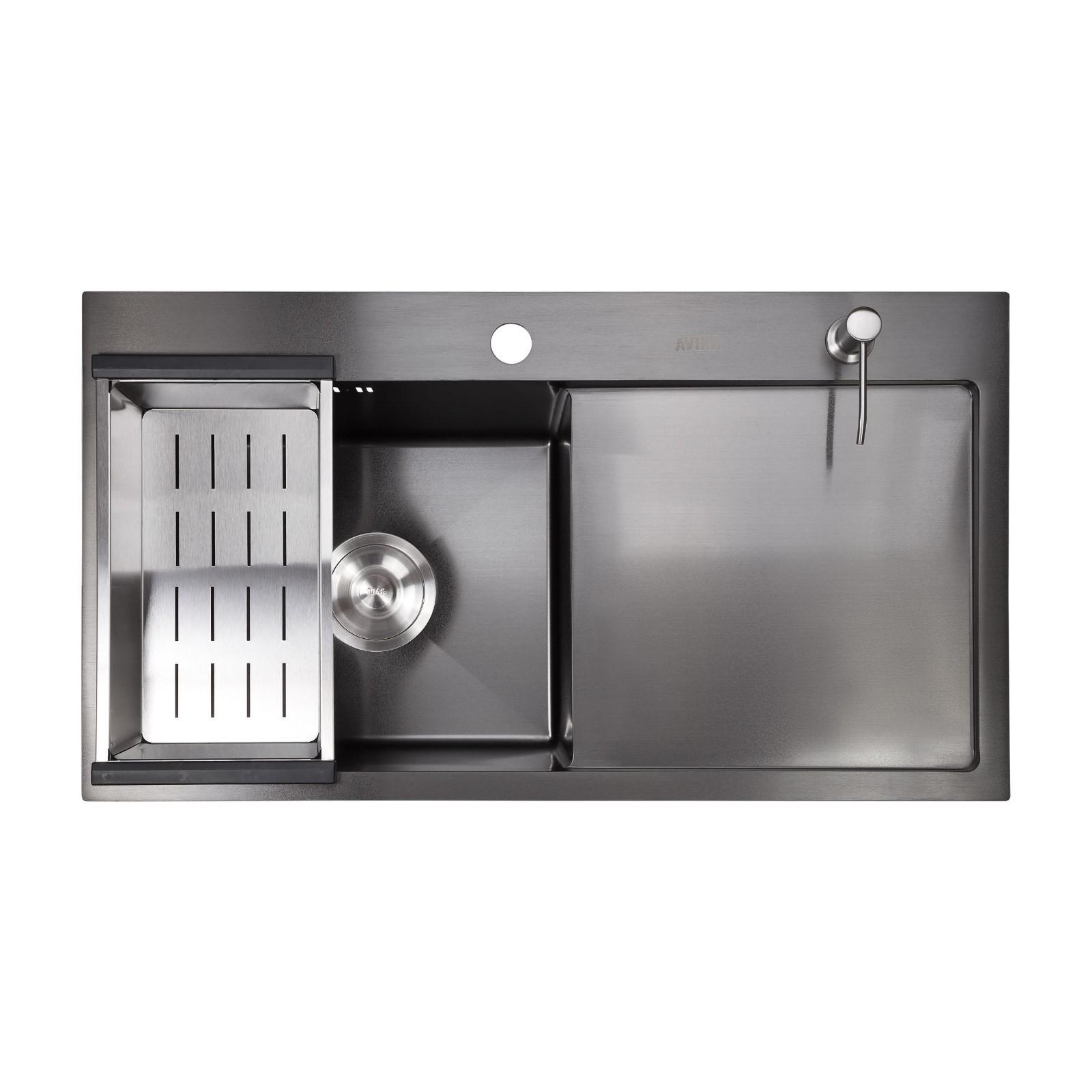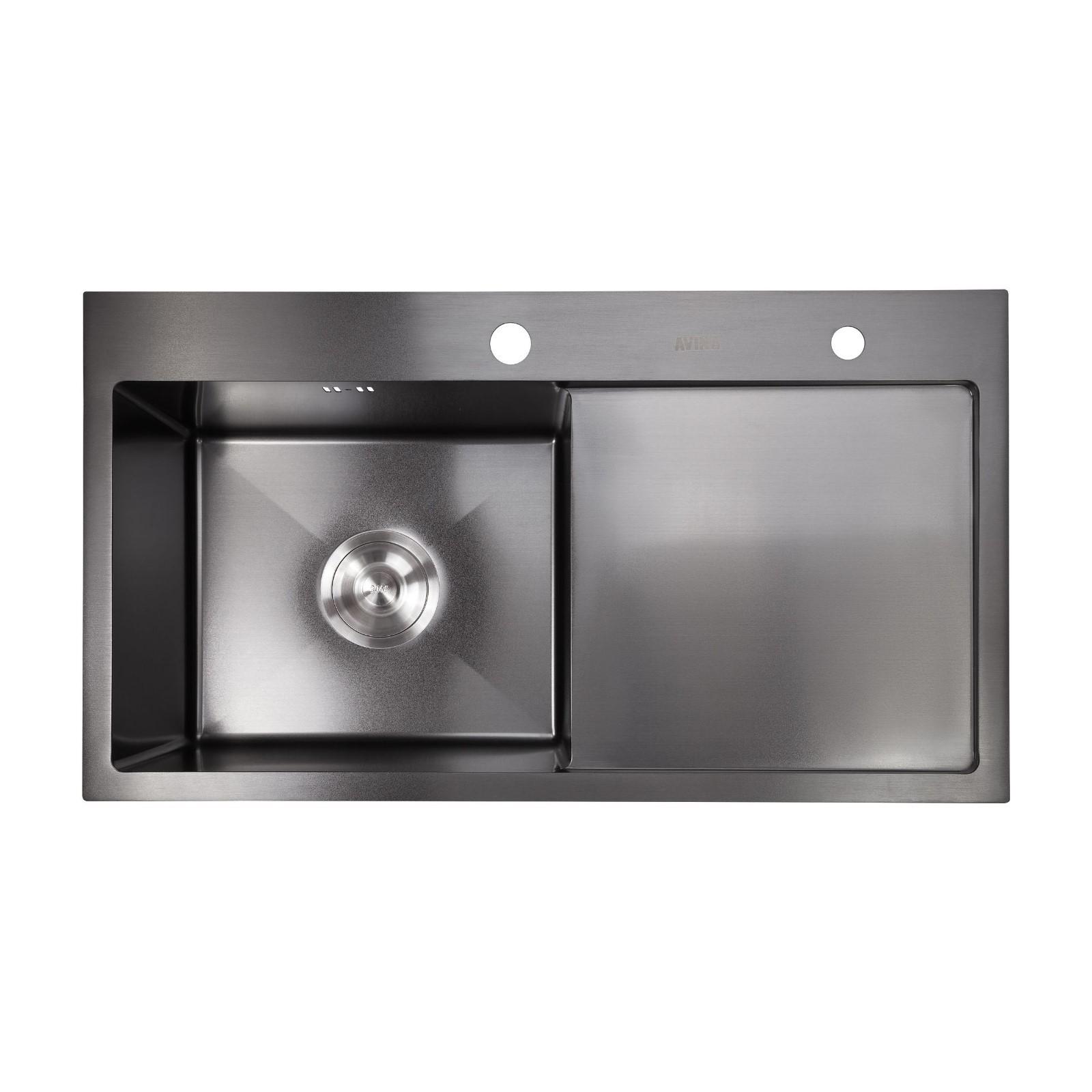 Мойка кухонная AVINA HM 7843 L black, врезная, выпуск 3 1/2, левая, 780х480х210 мм, черный