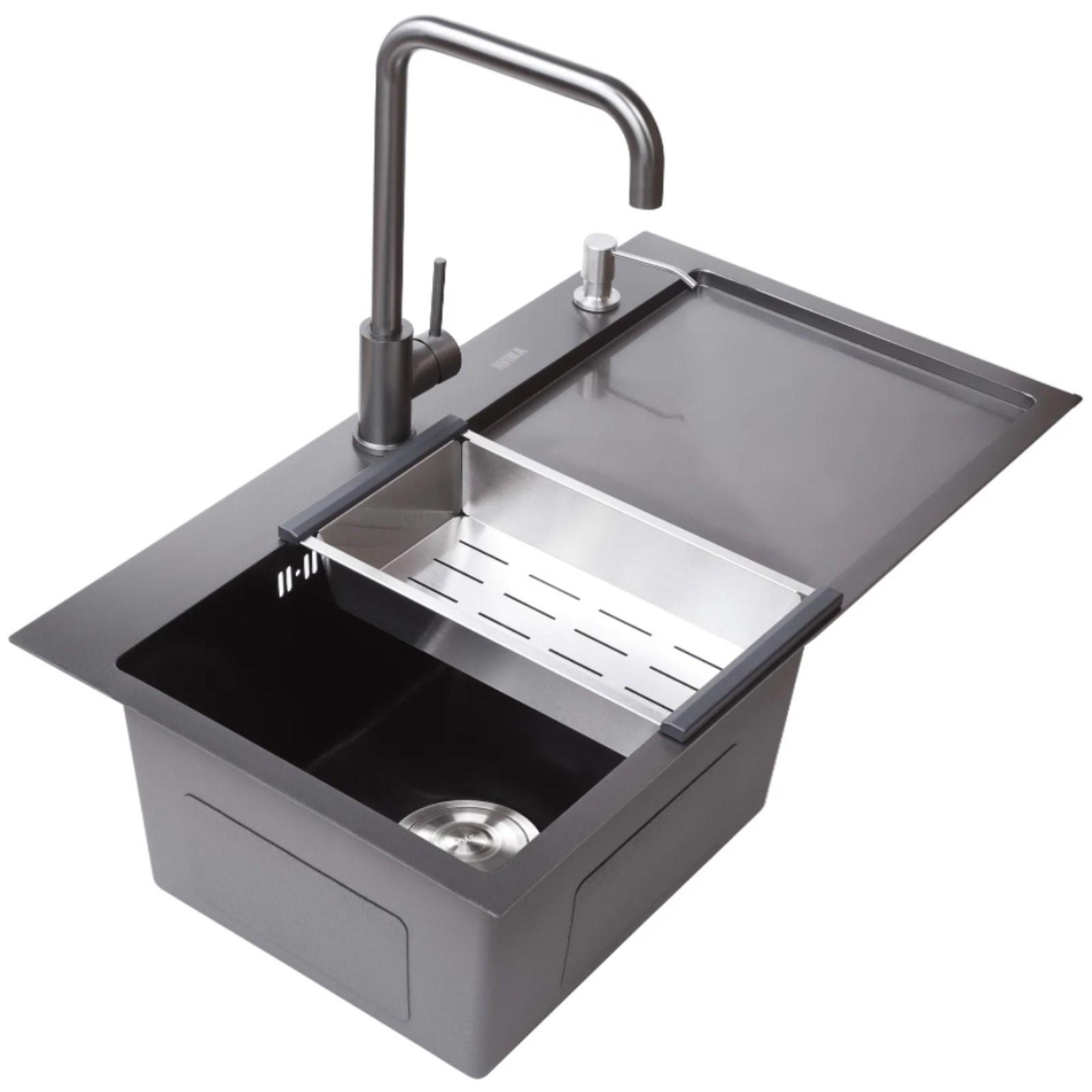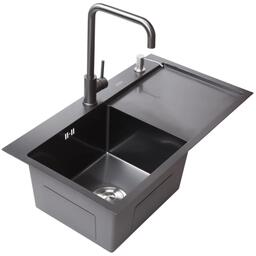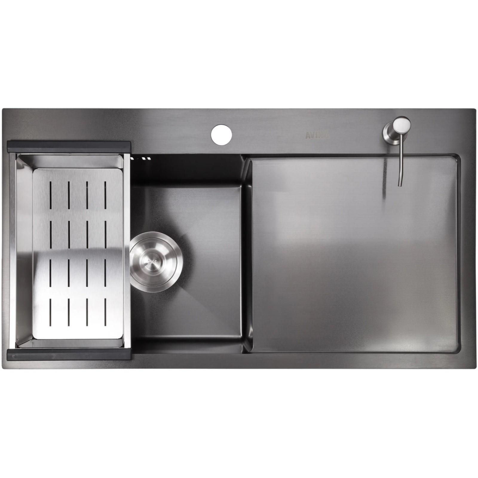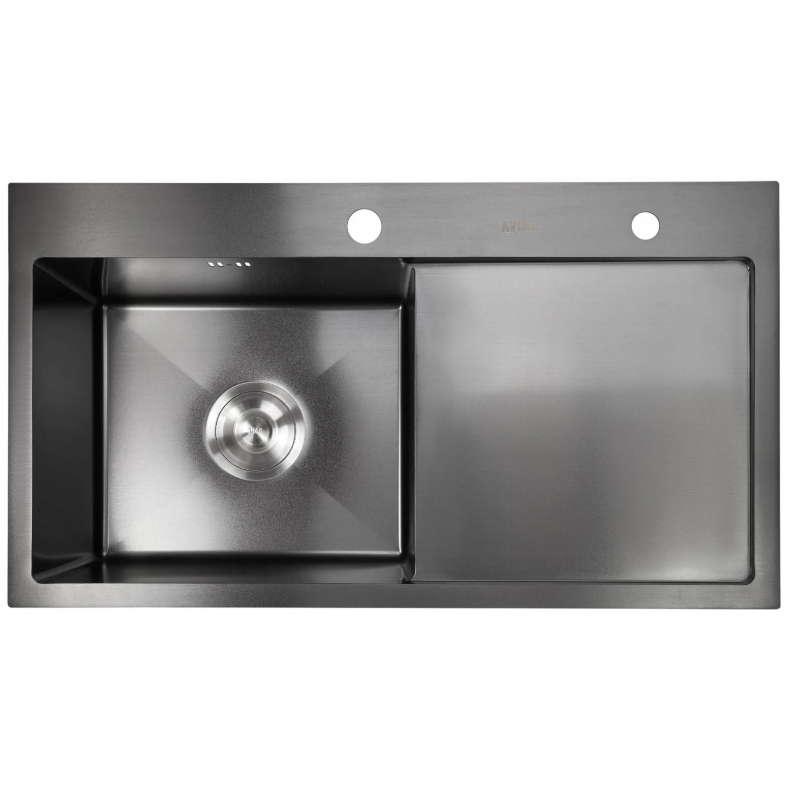 Мойка кухонная AVINA HM 6848 L black, врезная, выпуск 3 1/2, левая, 680х480х210 мм, черный