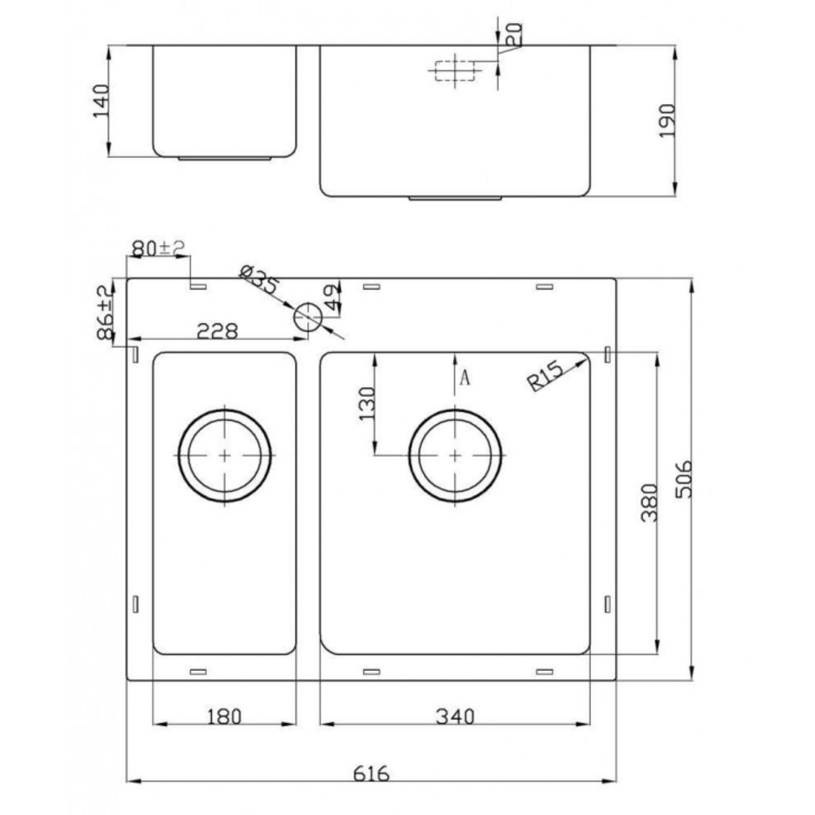 Мойка кухонная OULIN OL-FTR202R, врезная, 616 х 506 мм, прямоугольная, универсальная, сатин 930115