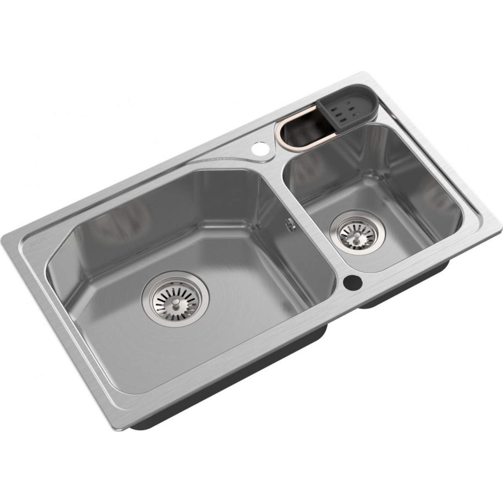 Мойка кухонная OULIN OL-H9818, врезная, 810 х 460 мм, прямоугольная, двойная, сатин