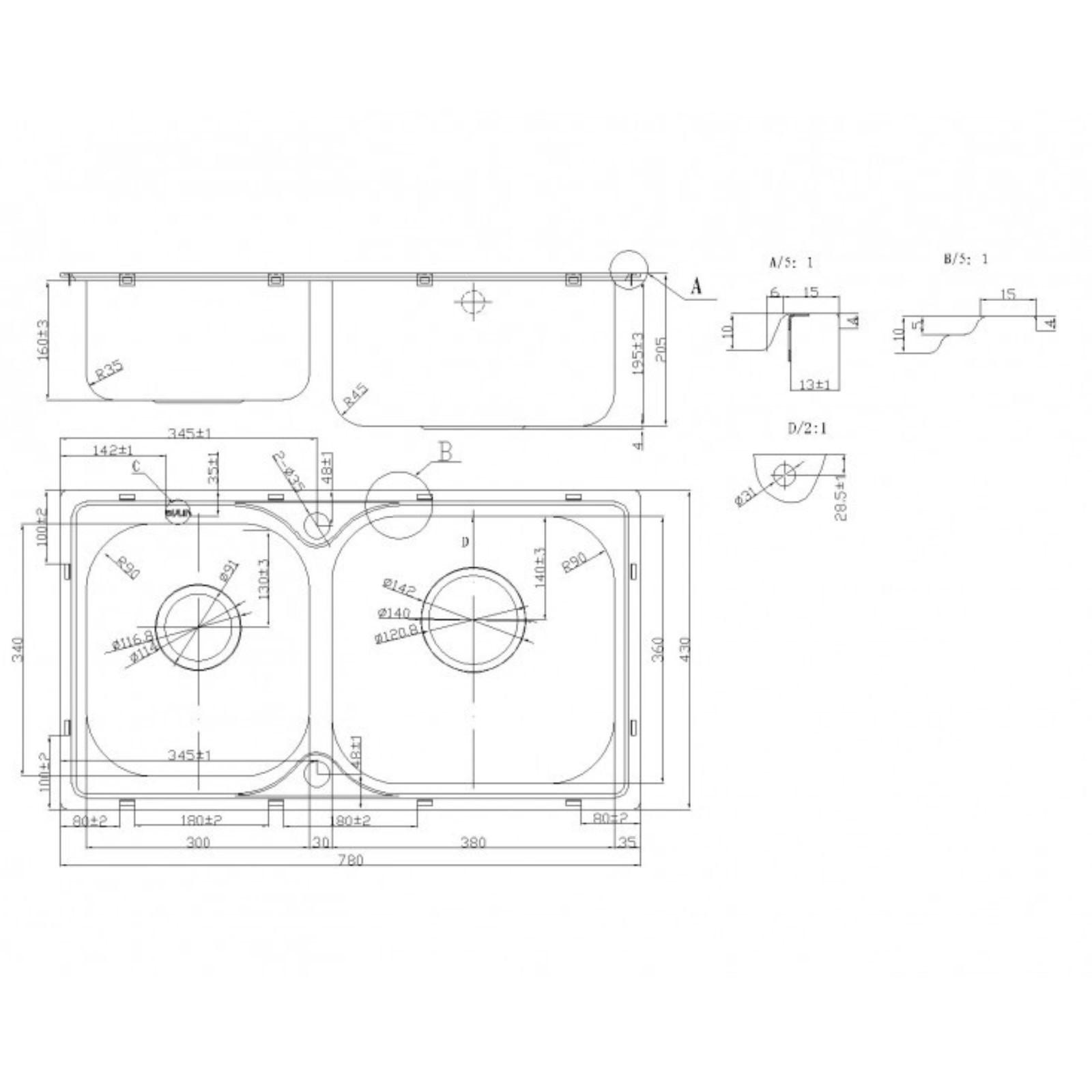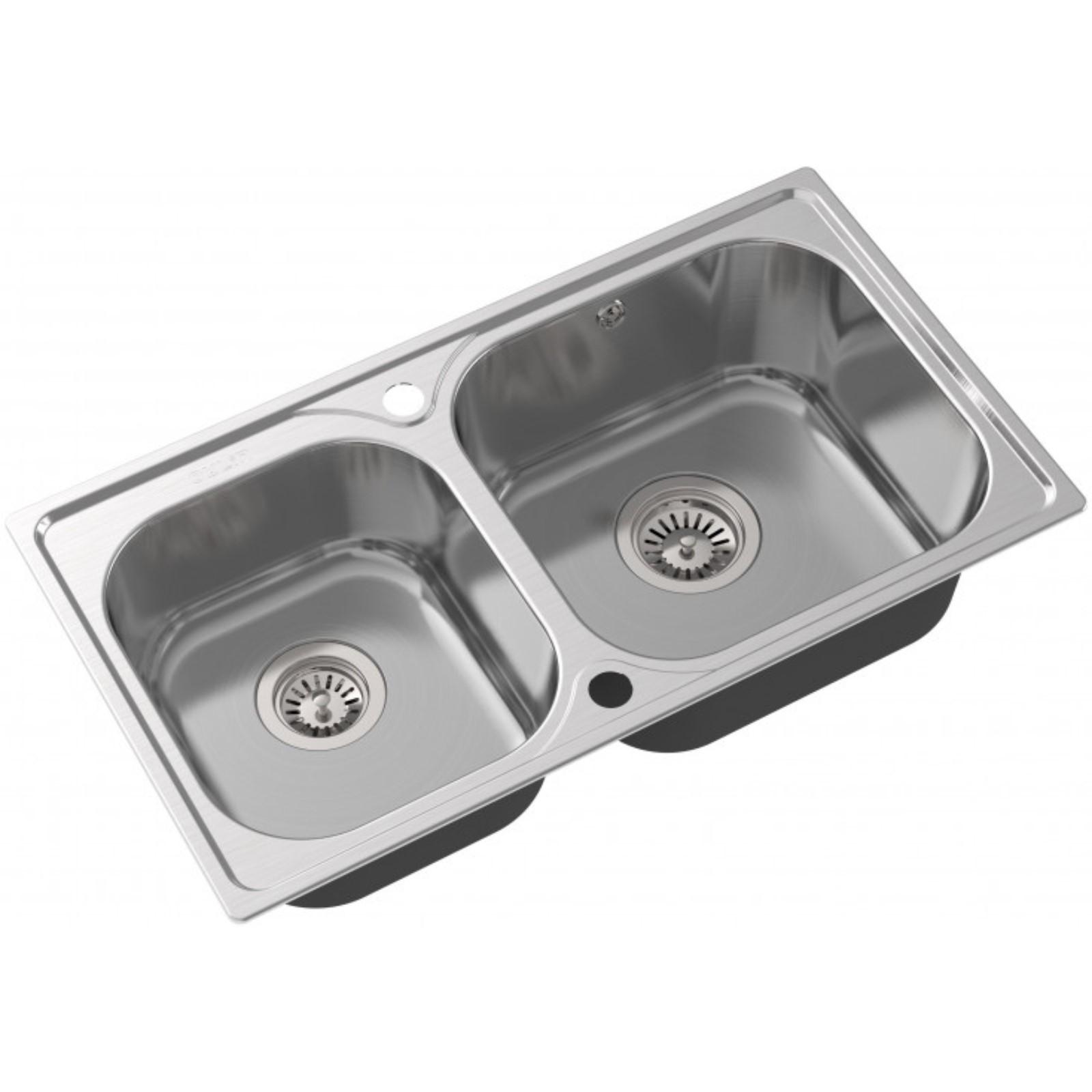 Мойка кухонная OULIN OL-H9819, врезная, 760 х 410 мм, прямоугольная, двойная, сатин