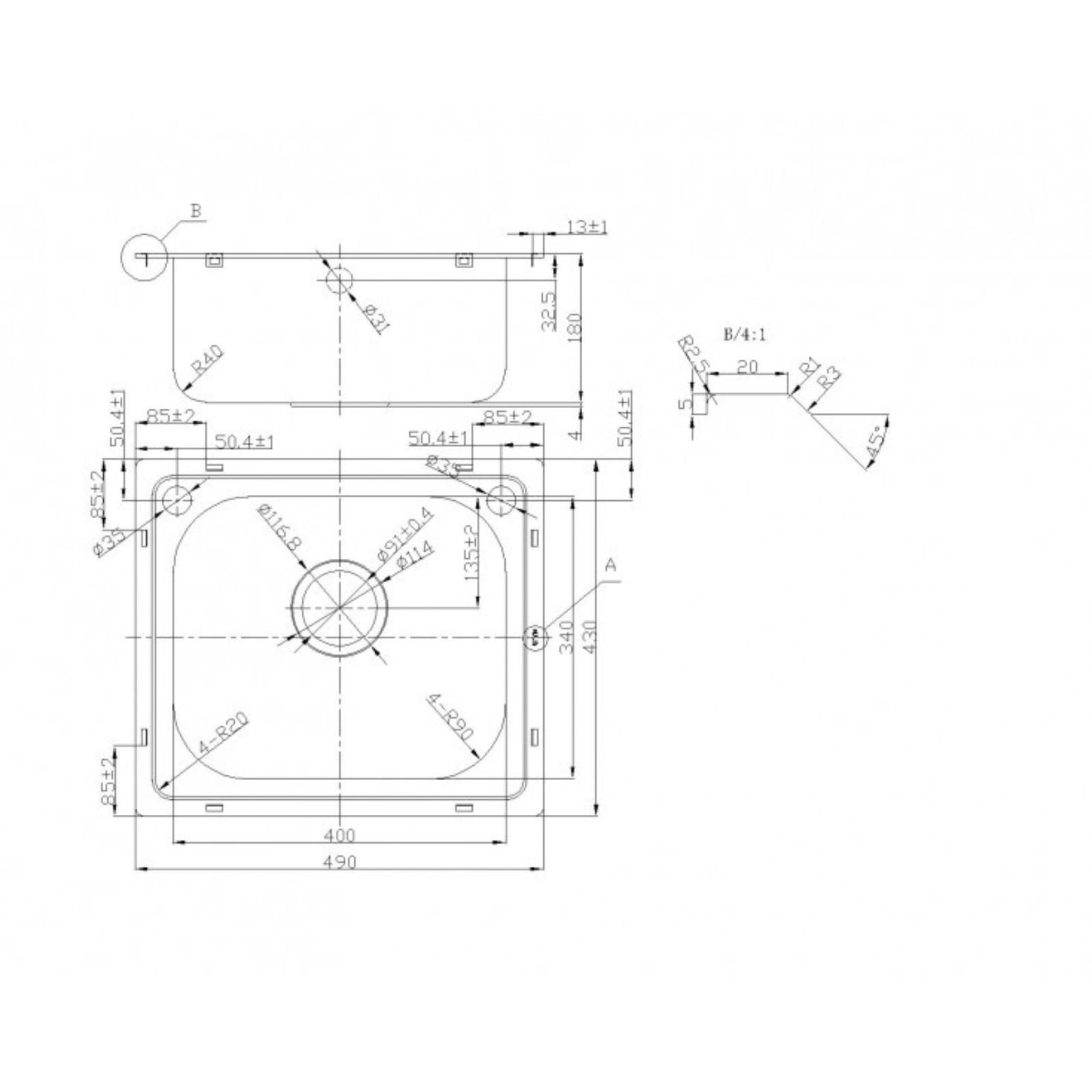 Мойка кухонная OULIN OL-203, врезная, 490х430х180 мм, прямоугольная, сатин