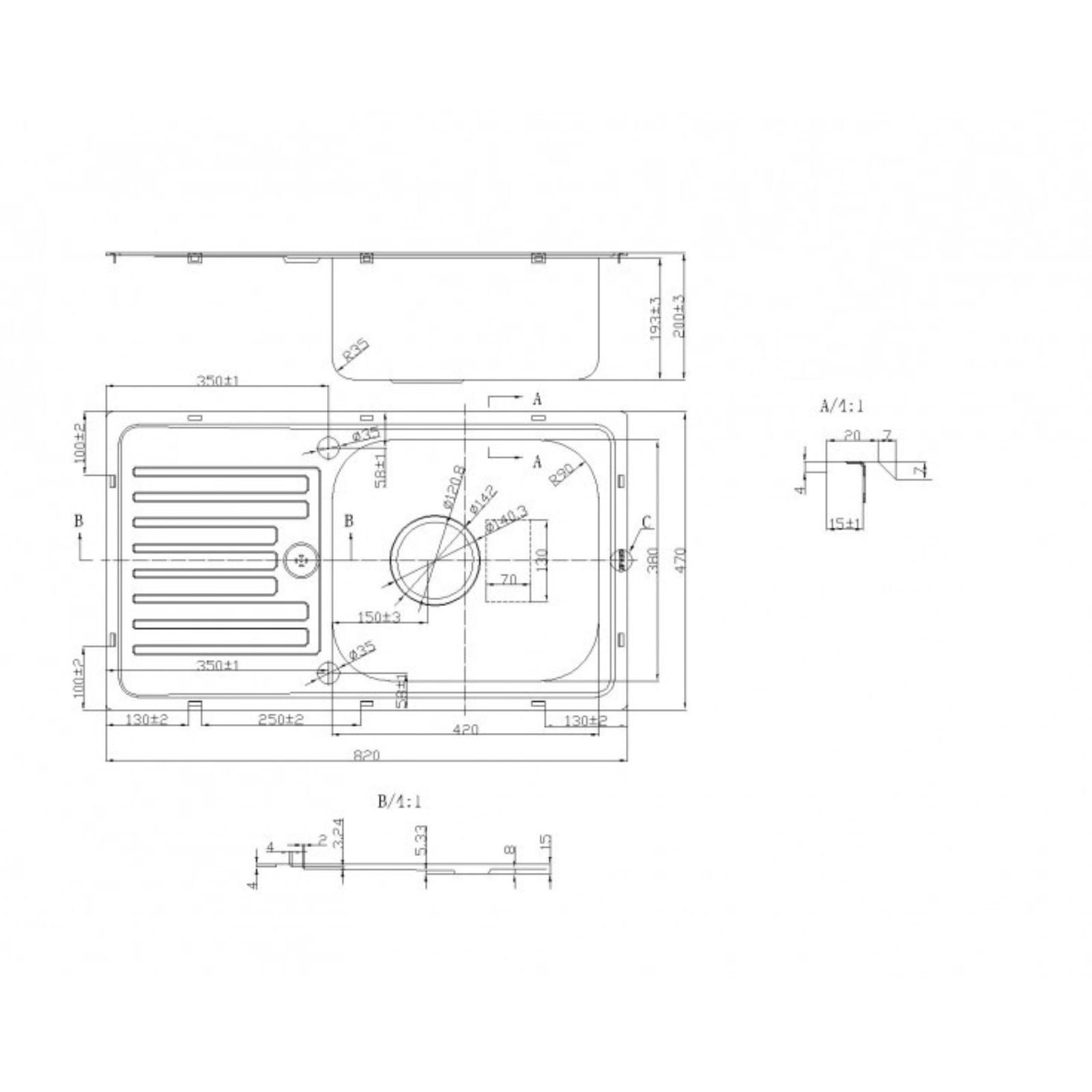 Мойка кухонная OULIN OL-101Y, врезная, 820х470х200мм, прямоугольная, двойная, сатин