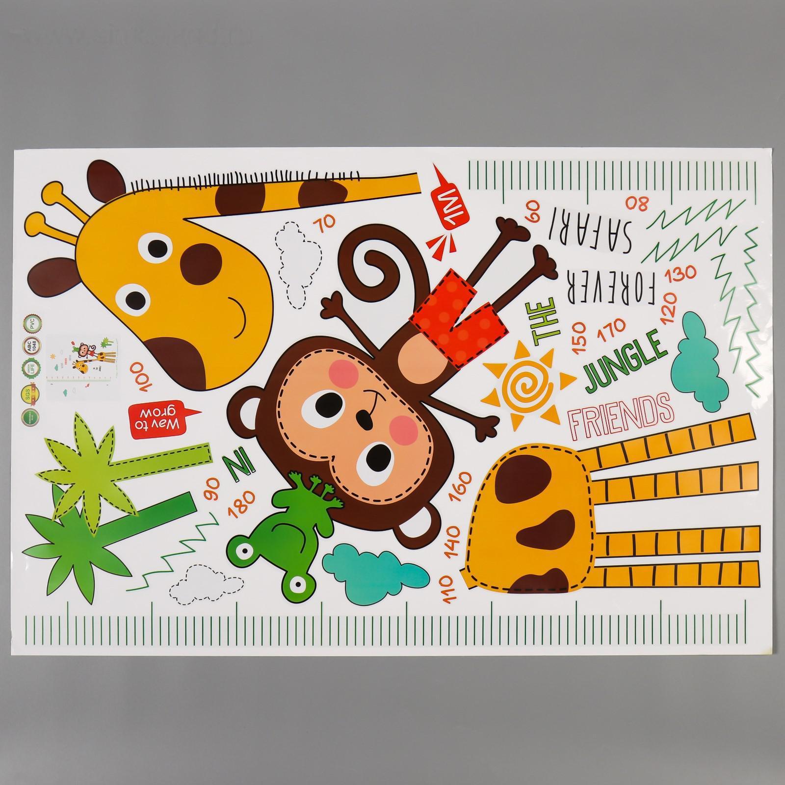 Наклейка пластик интерьерная ростомер "Жираф и обезьянка" 60х90 см