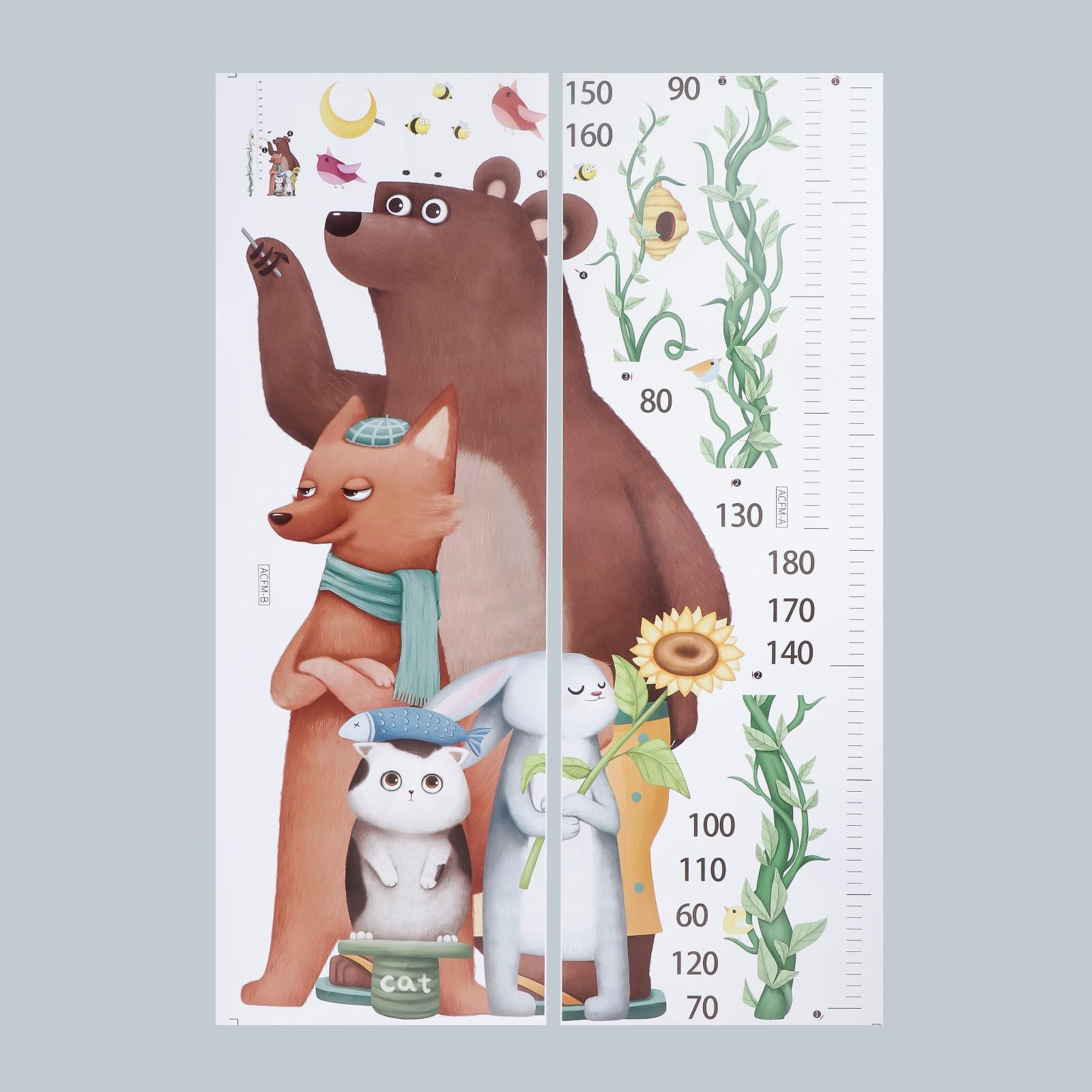 Наклейка пластик интерьерная цветная ростомер "Улей и зверята" набор 2 листа 30х90 см