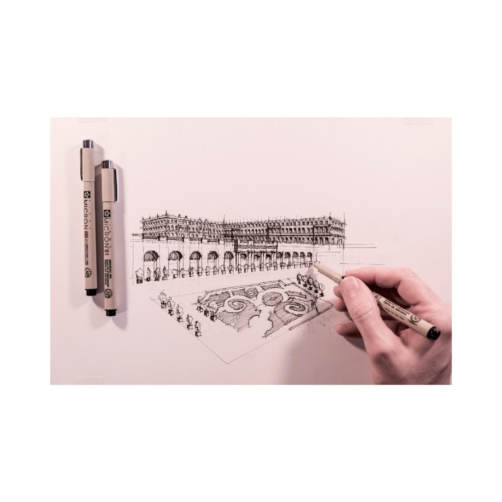 Набор капиллярных ручек Pigma (Micron 0.25 мм, 0.45 мм + Brush, черные) 3 штуки в блистере В ручках серии Pigma используются архивные чернила Pigma Ink: светостойкие (не выцветают), химически стабильные, на водной основе и пигментах. После высыхания устойчивы к воздействию воды (не расплываются при попадании на воды на бумагу), не пачкаются, не смазываются и не проступают на оборотную сторону листа (для большинства видов бумаги). В наборе 2 черные капиллярные ручки Sakura Pigma Micron 0.25 м, 0.45 мм и 1 черная ручка с наконечником-кистью Pigma Brush. Применение Sakura Pigma Micron: