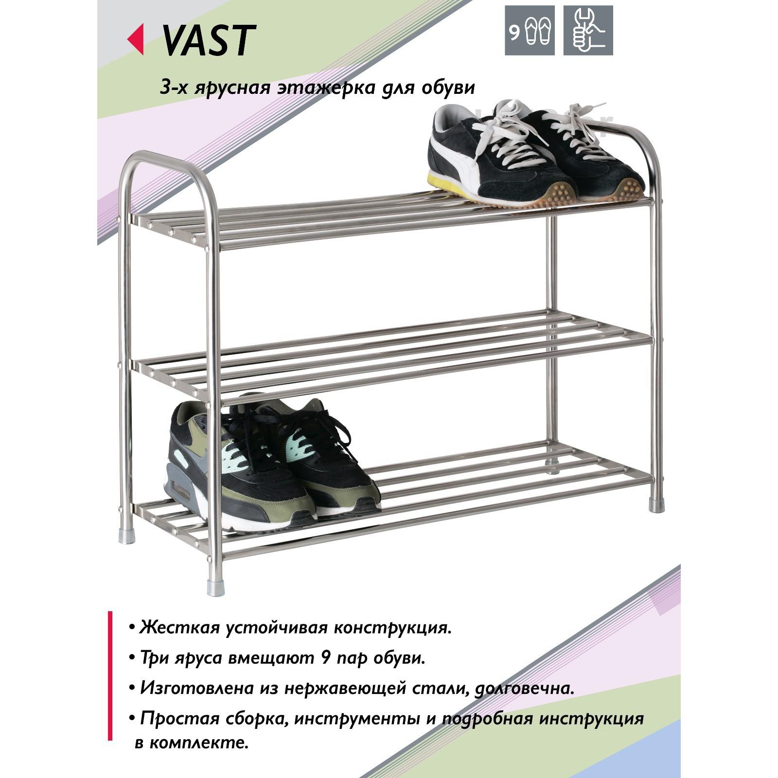 Этажерка для обуви VAST, 630 × 240 × 500 мм, 3-х ярусная