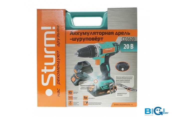 Дрель-шуруповерт Sturm CD3620 (с 2-мя АКБ, кейс)