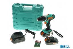 • Комплектация ДрельДвусторонняя бита 2 шт.Зарядное устройство- 1 шт.Аккумуляторная батарея- 2шт.ИнструкцияКейс