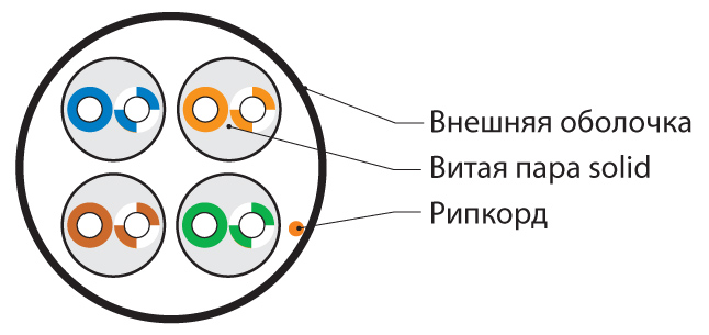 - Конструкция кабеля U/UTP